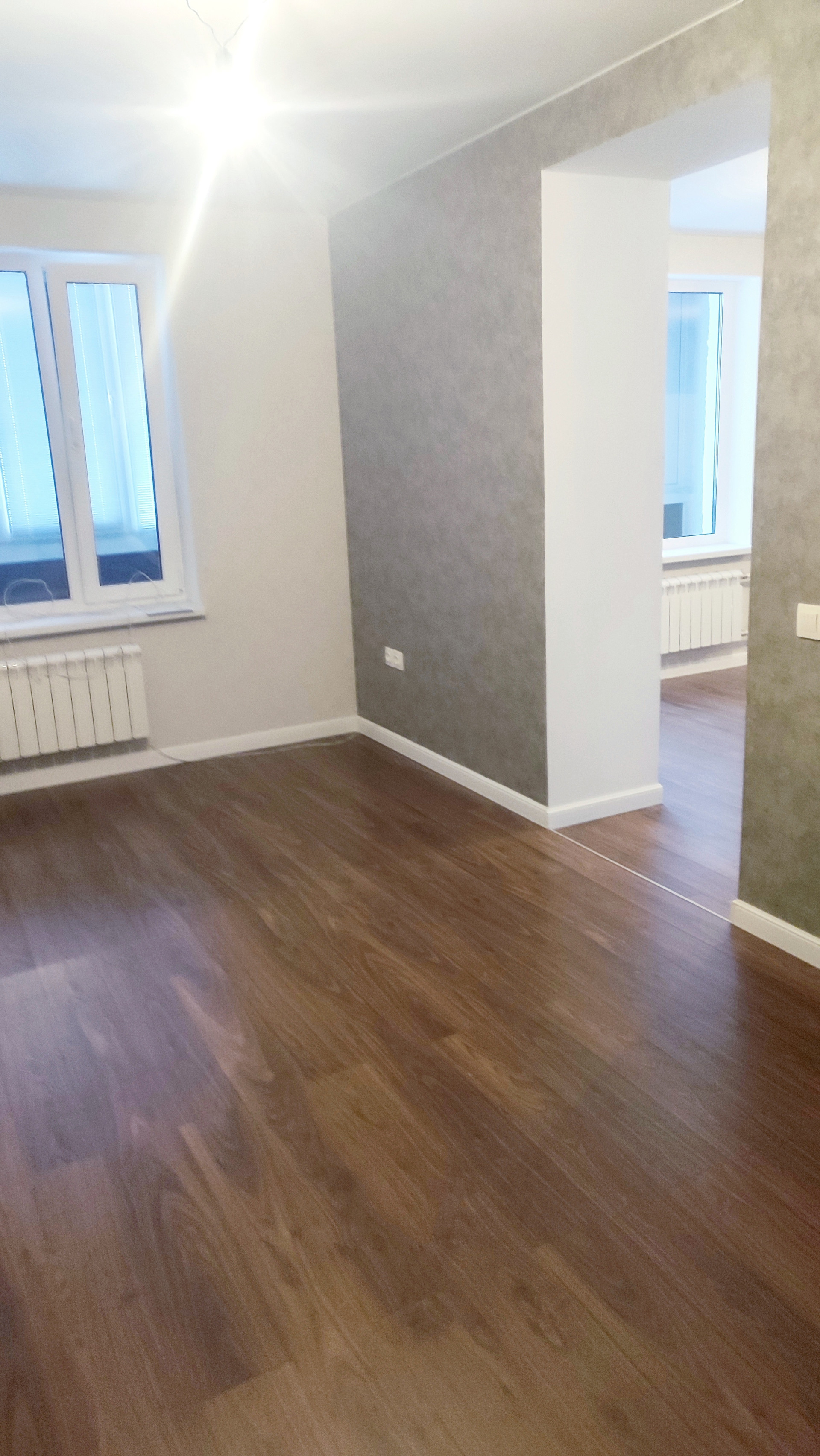 Дверей. Стены,  пол выравнены. Выложен дорогой керамогранит. Обустроена гардеробная. Лоджия утеплена.укреплена и сделаны новые металлические ограждения Перепланировка  узаконена. 1 собственник. Чистая продажа. Просьба риэлторов не беспокоить. Есть свой риэлтор. Просмотр с покупателем. Договоров ни с кем не подписываю.