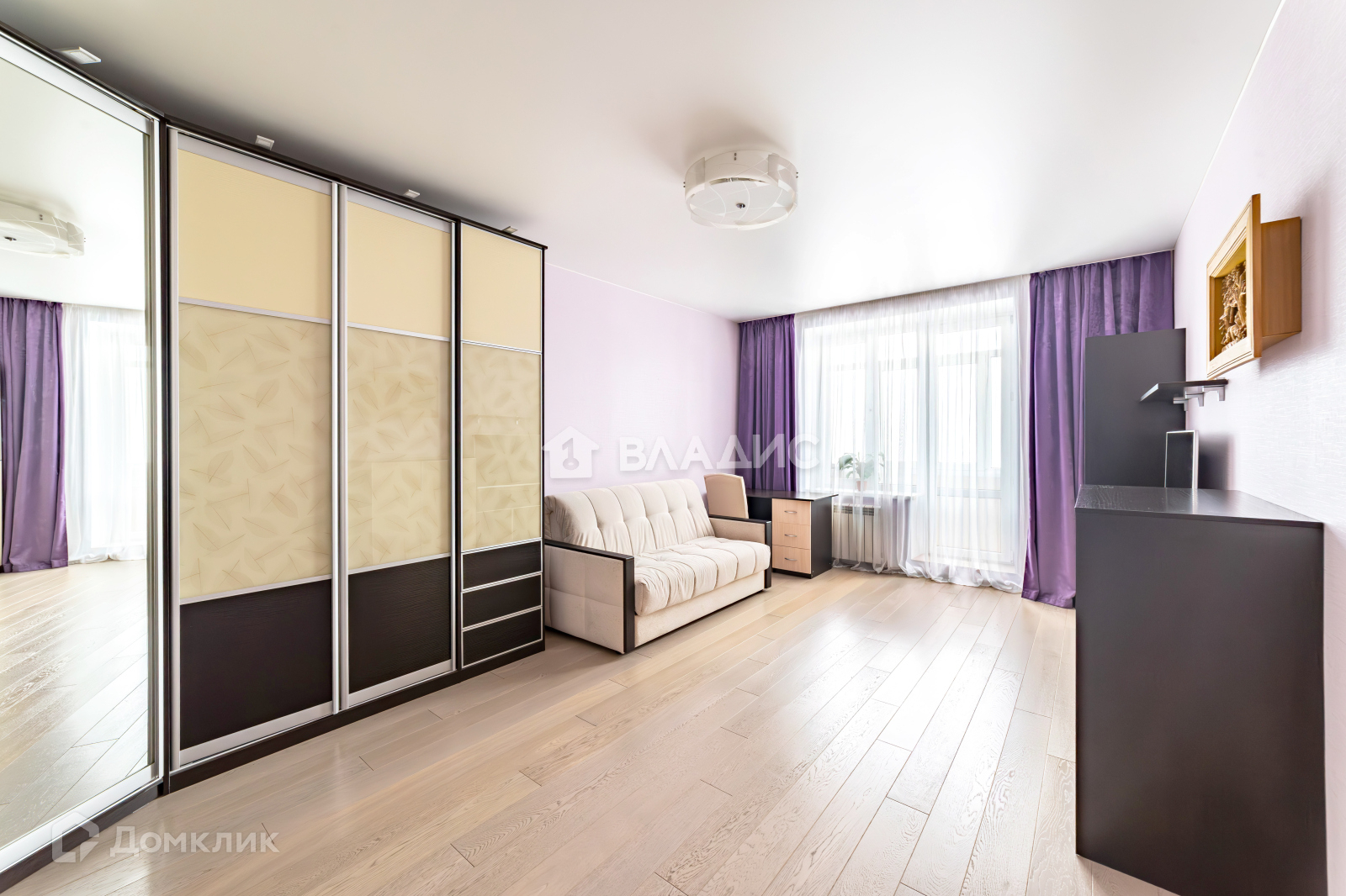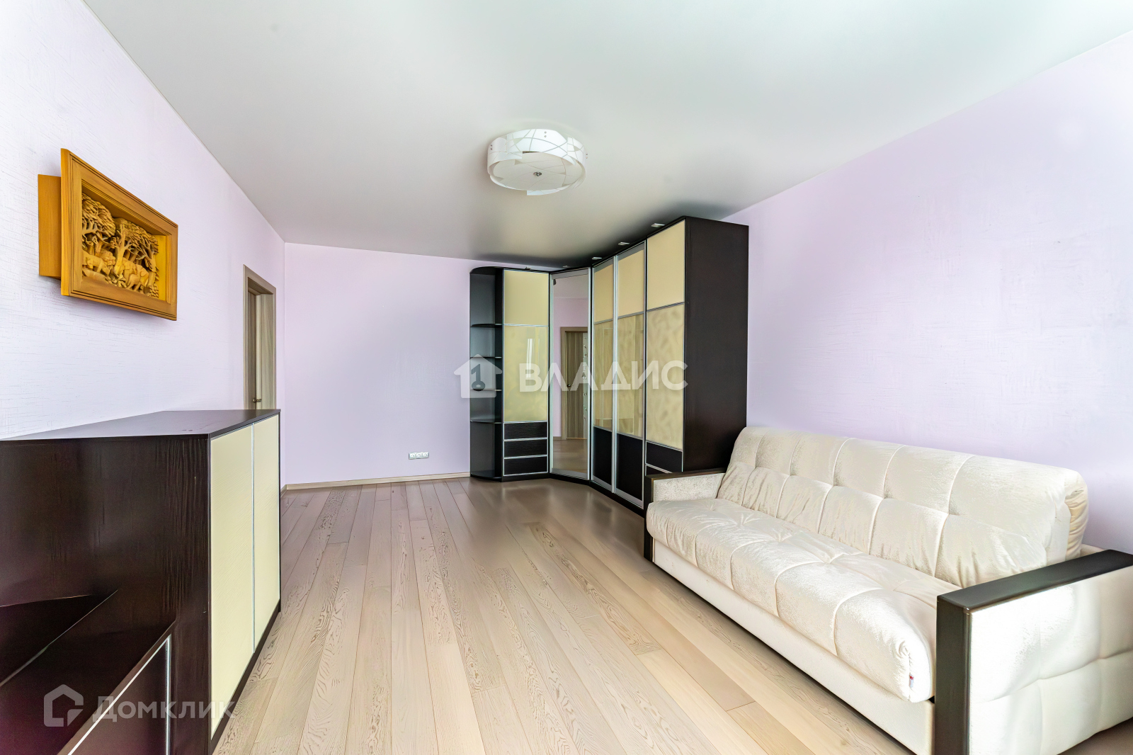 Комната площадью 22,7 кв.м укомплектована мебелью производства Бельгии: тв-зона и вместительный угловой шкаф выполнены на заказ из материалов премиум класса, диван с пружинном блоком, письменный стол и стул.