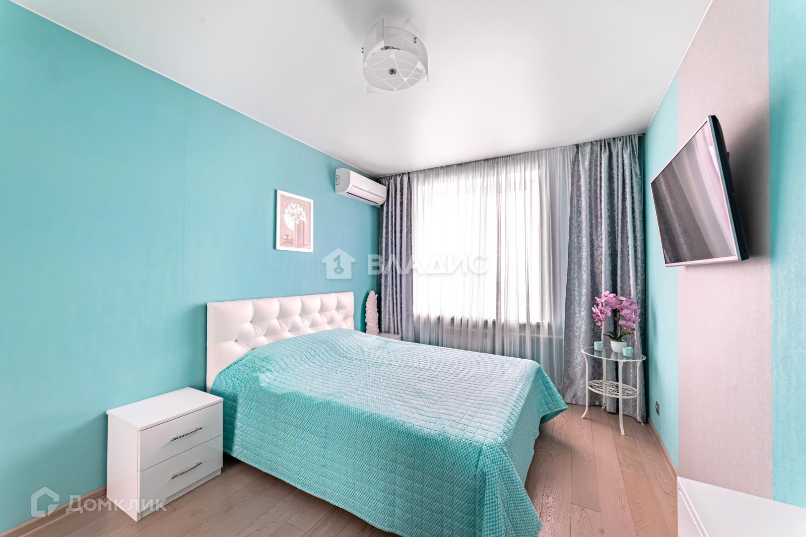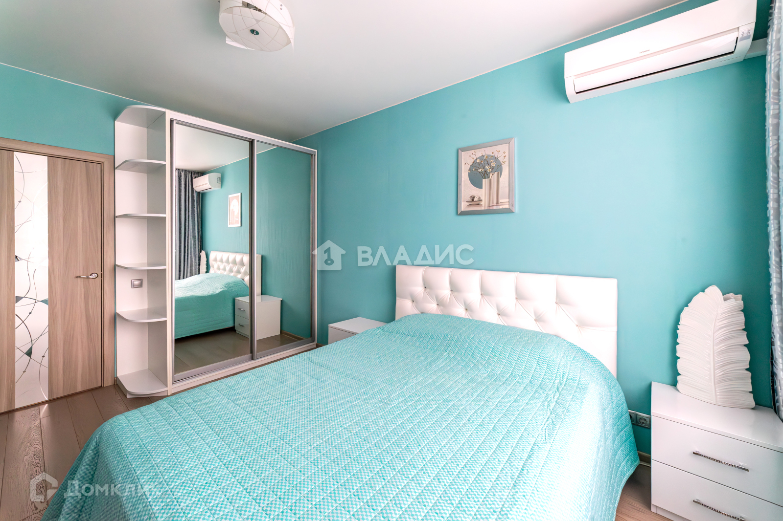 В спальне установлен кондиционер HITACHI.