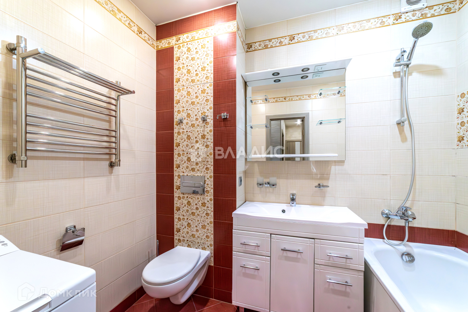 Санузел совмещённый.  Стиральная машинка BOSCH пр-во Германия. Плитка Италия. Инсталляция ROCA, ванна ROCA.