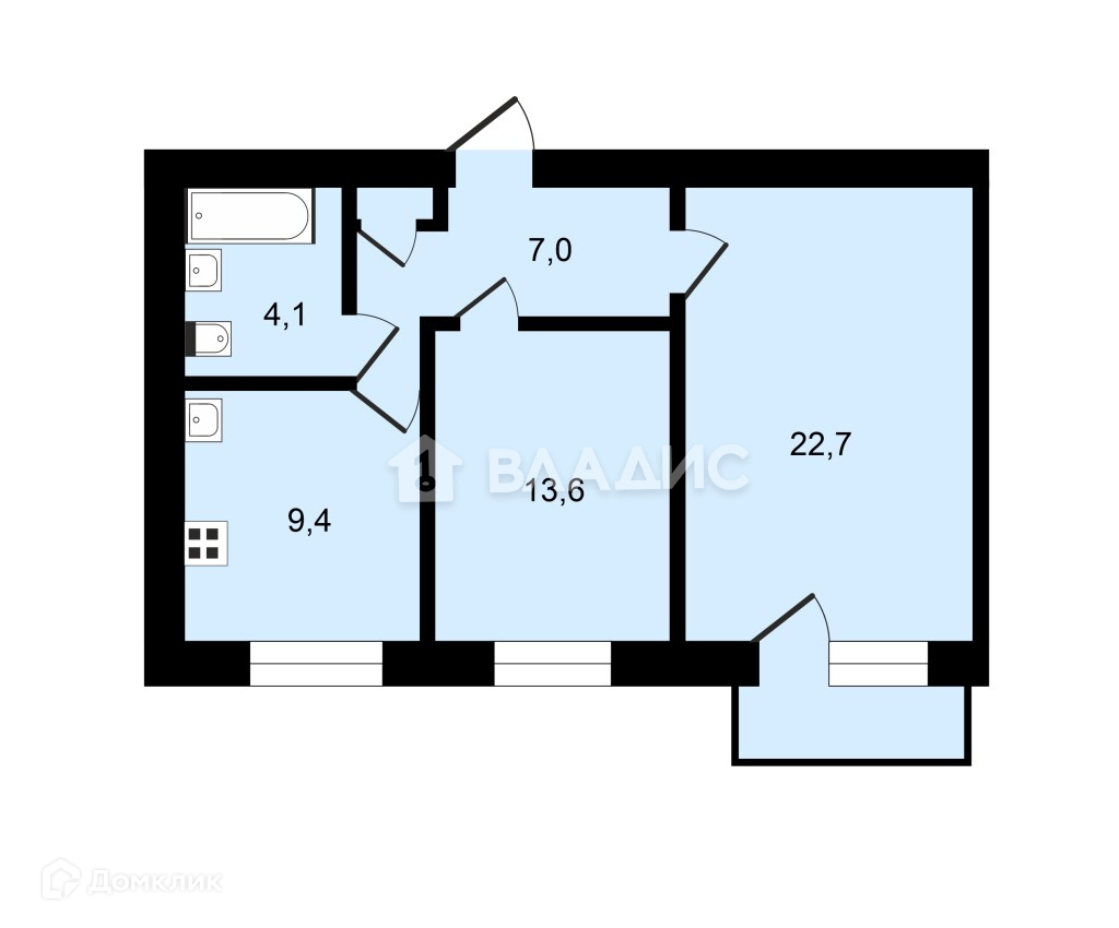 Общая площадь 56.8 м2
