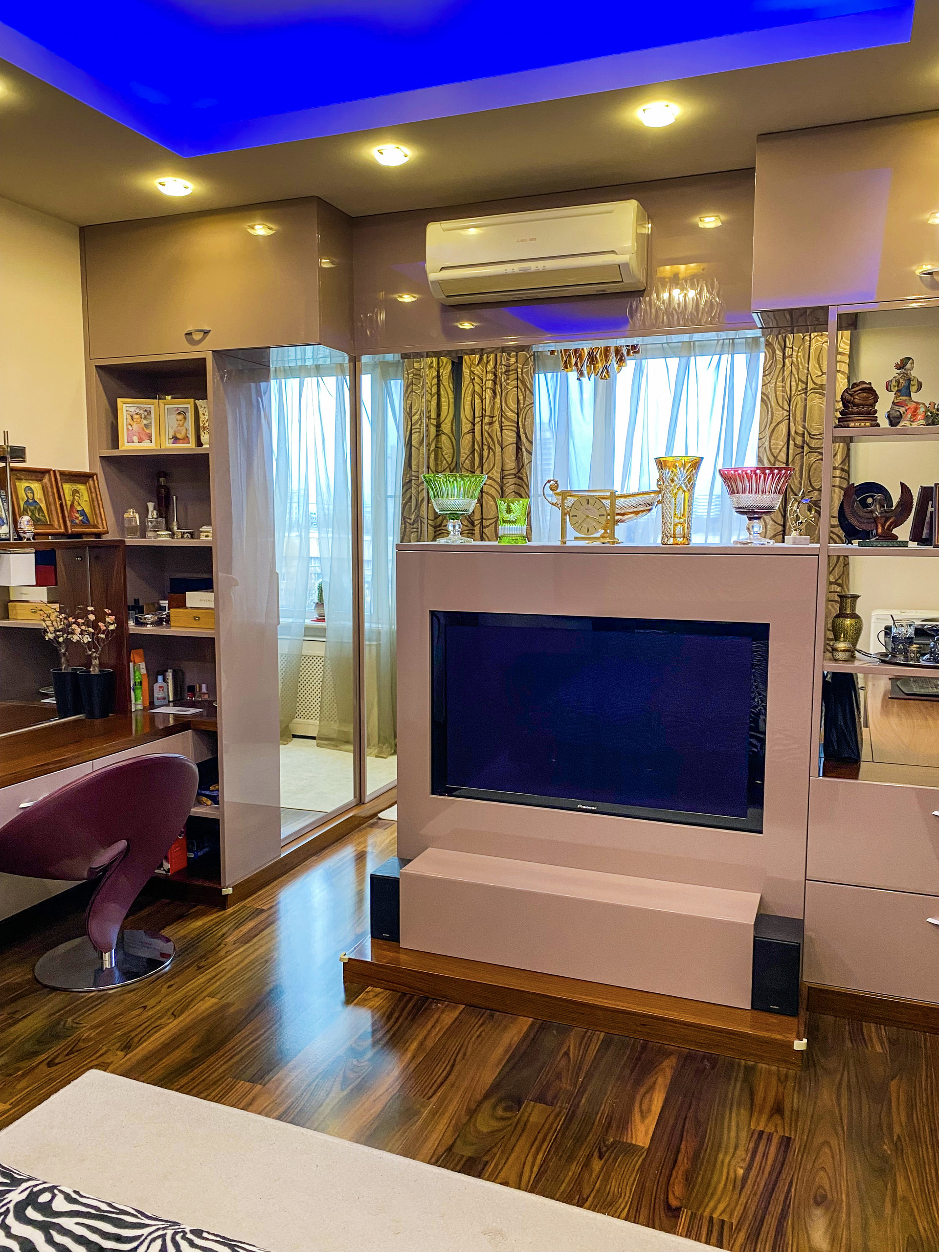 - Мастер-спальня 28,5м2 с зоной рабочего кабинета, лоджией 7м2 и санузлом с ванной и душевой кабиной, дешёвой блок с функцией бани Pharo hansgrohe.