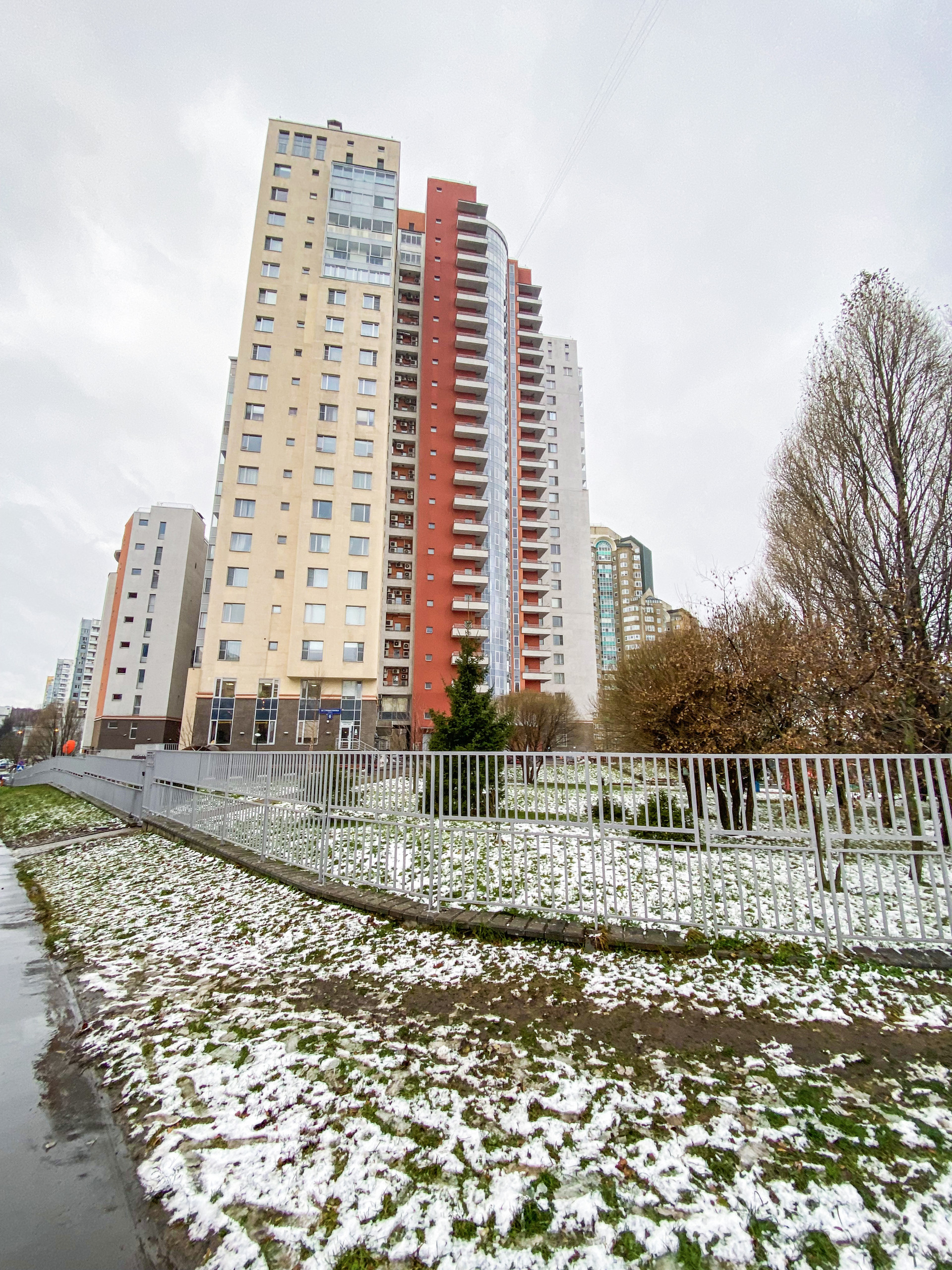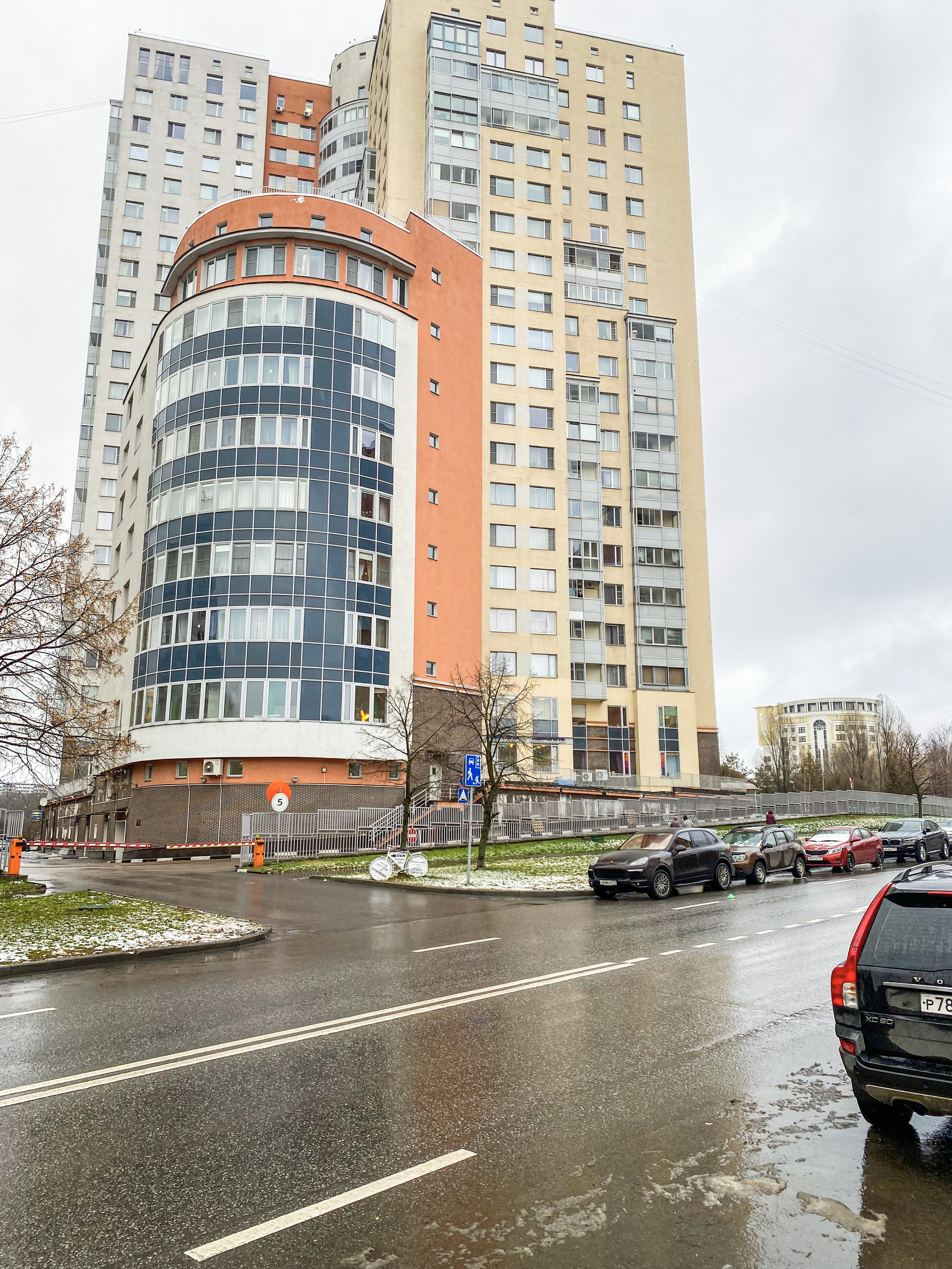 Огороженная и охраняемая территория дома, со своей инфраструктурой и подземным паркингом, презентабельная входная группа подъезда.