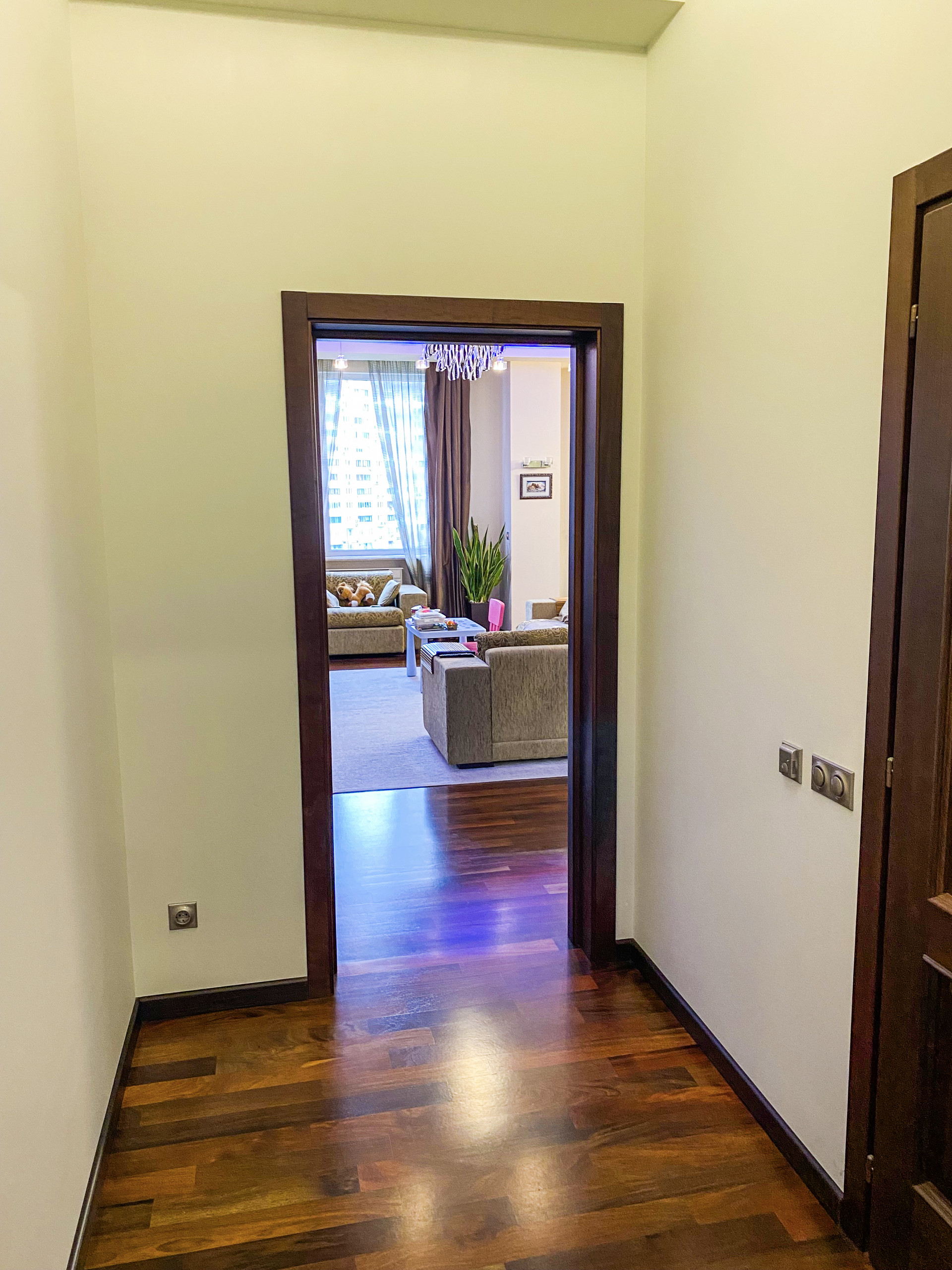 - полы всех ванных комнат, кухни и коридор с регулируемым подогревом. Пол жилых комнат дубовый паркет.