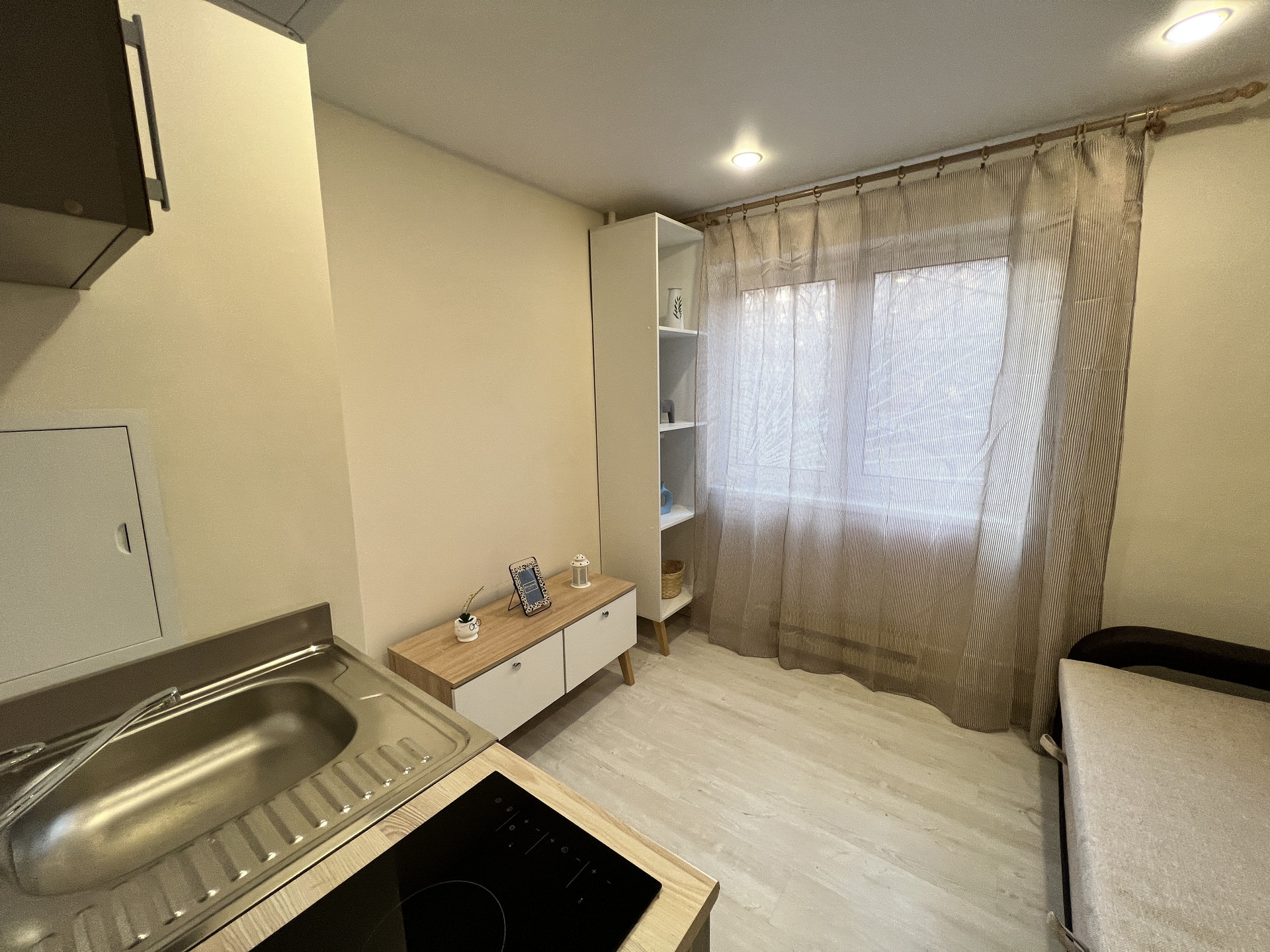 Дом панельный, обновлен после капитального ремонта, новая входная группа в подъезд. Студия 12,5 м2 расположена на высоком первом этаже дома. Окно пластиковое во двор. Металлическая дверь, родной санузел, свои счетчики на свет и воду. Состояние — под ремонт. Готовы оказать помощь с ремонтом "под ключ" внутри студии по отдельному договору. На фото возможный дизайн интерьера такой студии.