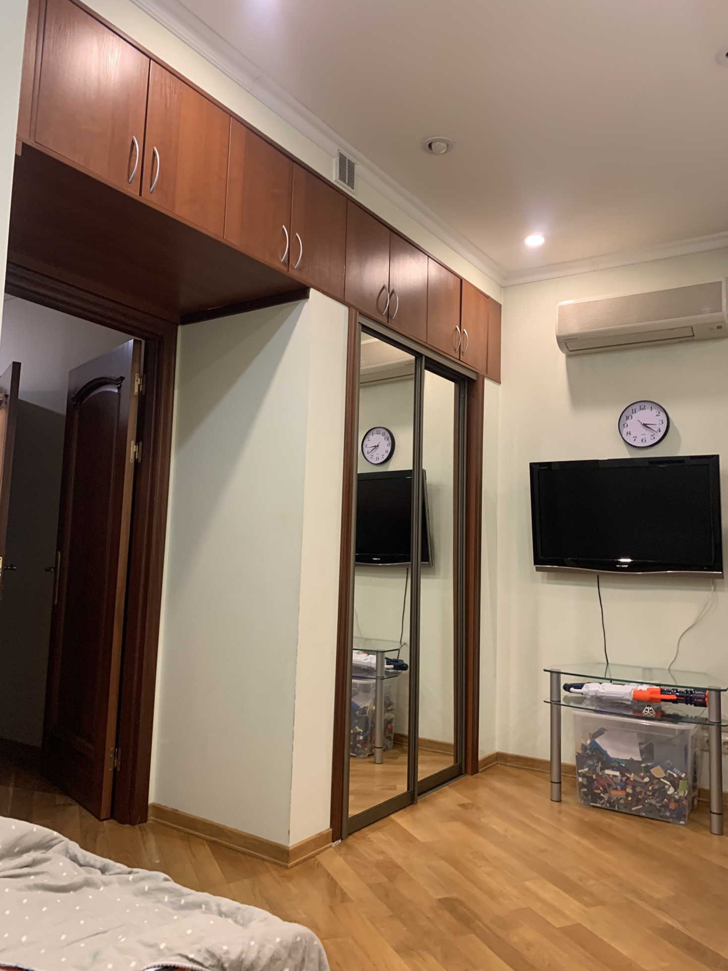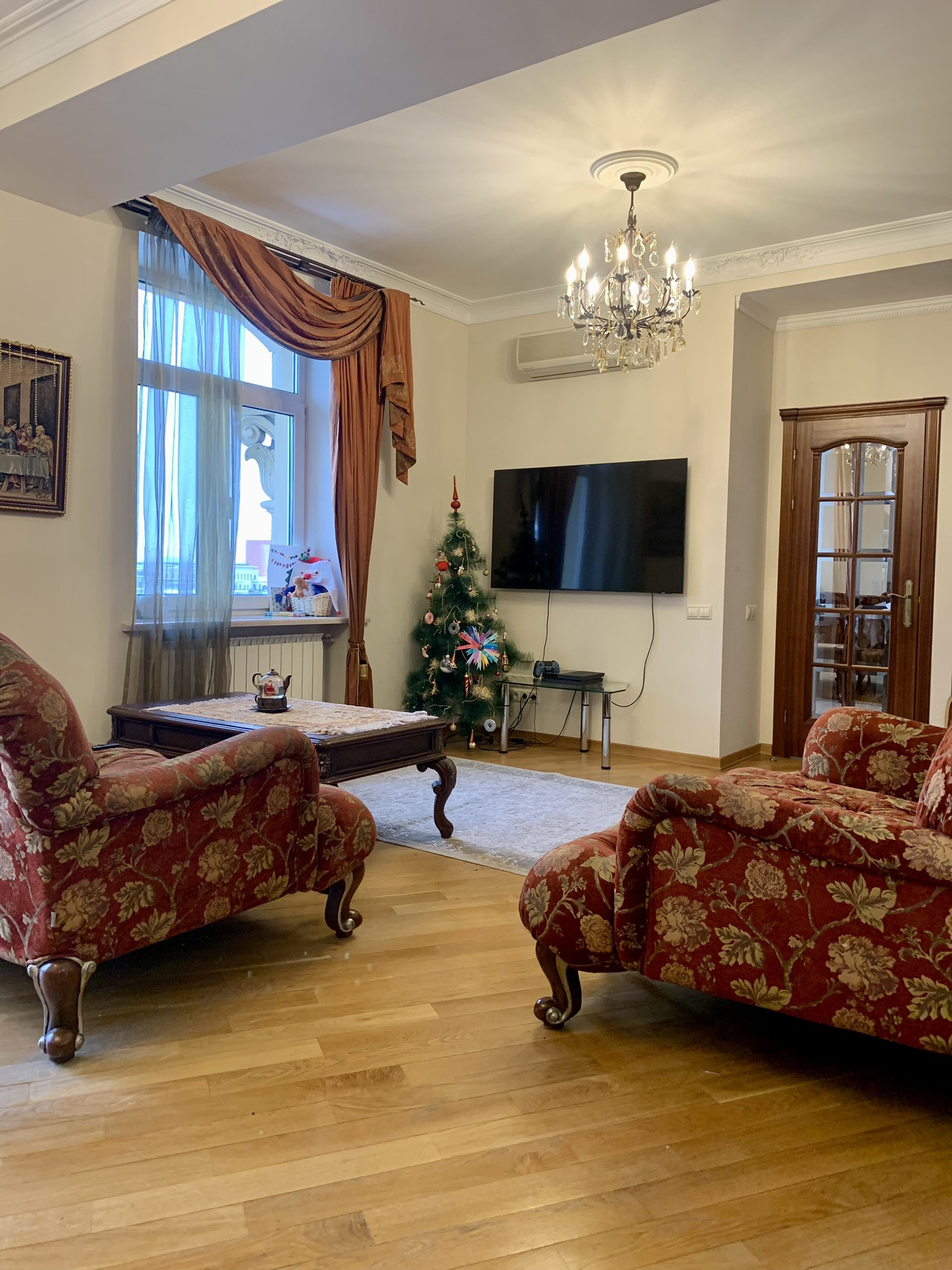 В квартире четыре комнаты: кухня-столовая, гостиная, 3 спальни, два санузла, две гардеробные.