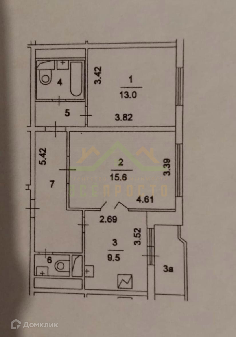 Общая площадь 54.2 м2