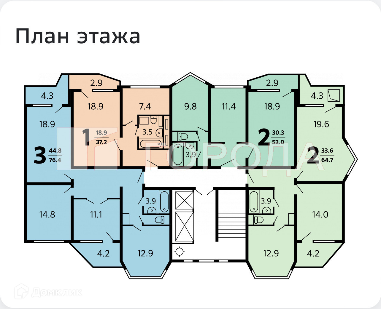 Общая площадь 76.6 м2