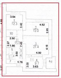 Жилая площадь 48.7 м2
