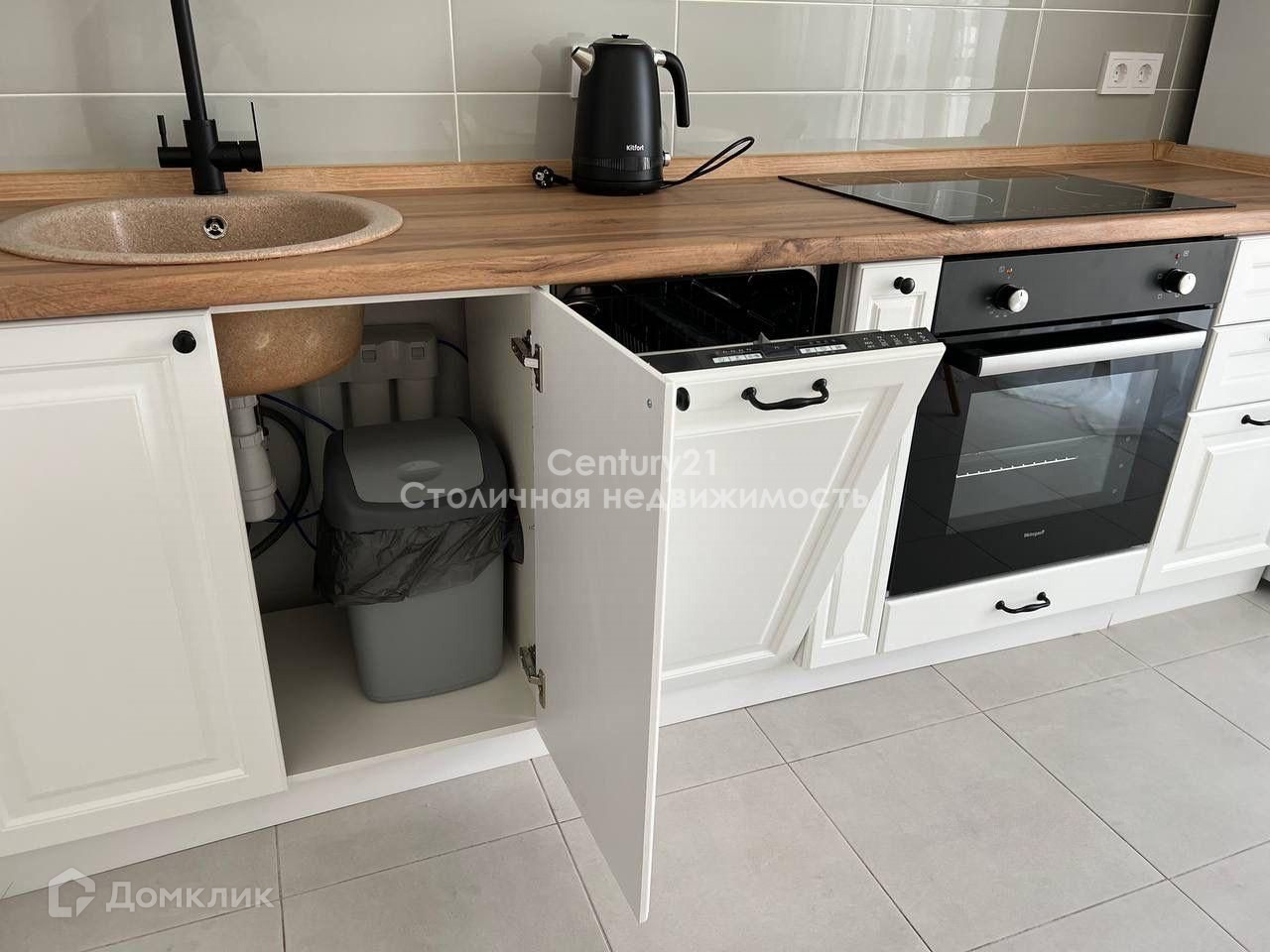 На кухне варочная панель, духовой шкаф, посудомоечная машина, холодильник, микроволновая печь, чайник, новый фильтр Аквафор.