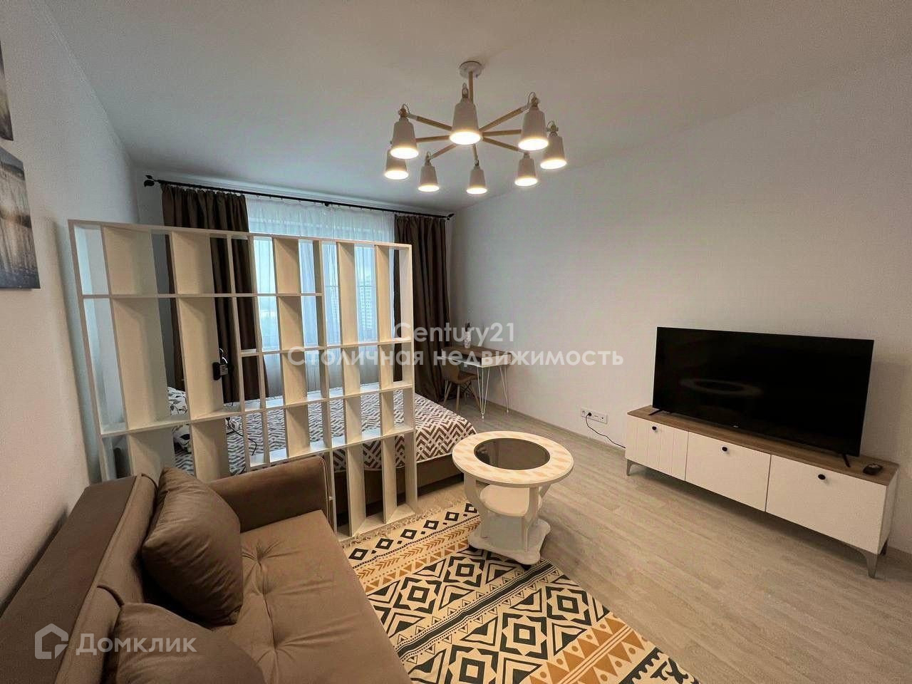 Жилая комната зонирована на спальную и гостиную зоны.