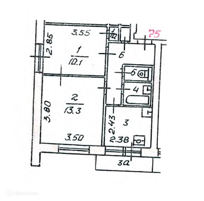 Общая площадь 38.1 м2