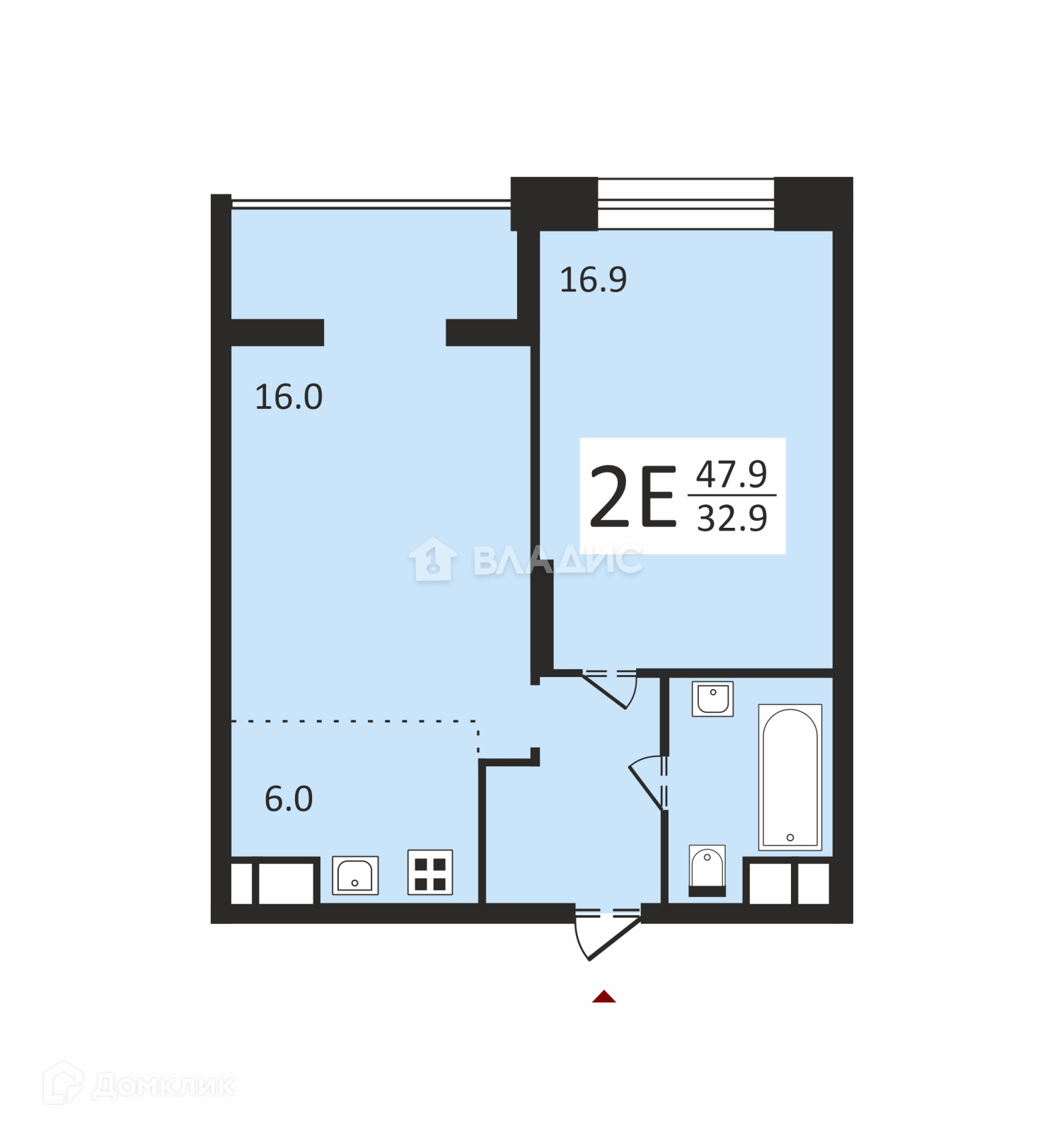Жилая площадь 32.9 м2