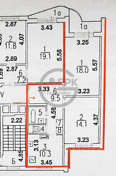 Общая площадь 56.7 м2