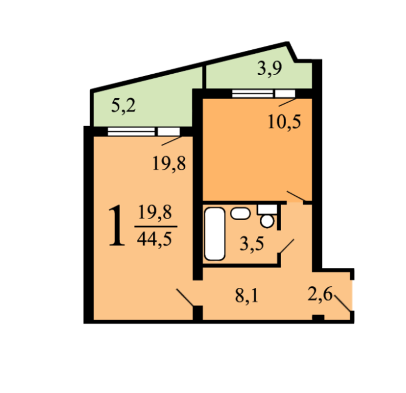 Жилая площадь 19.8 м2