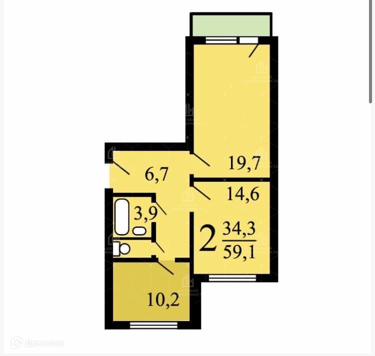 Жилая площадь 34.3 м2