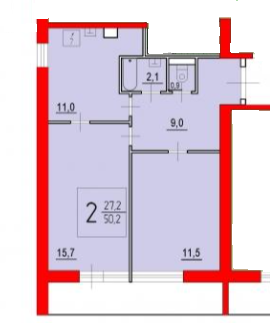 Общая площадь 52 м2