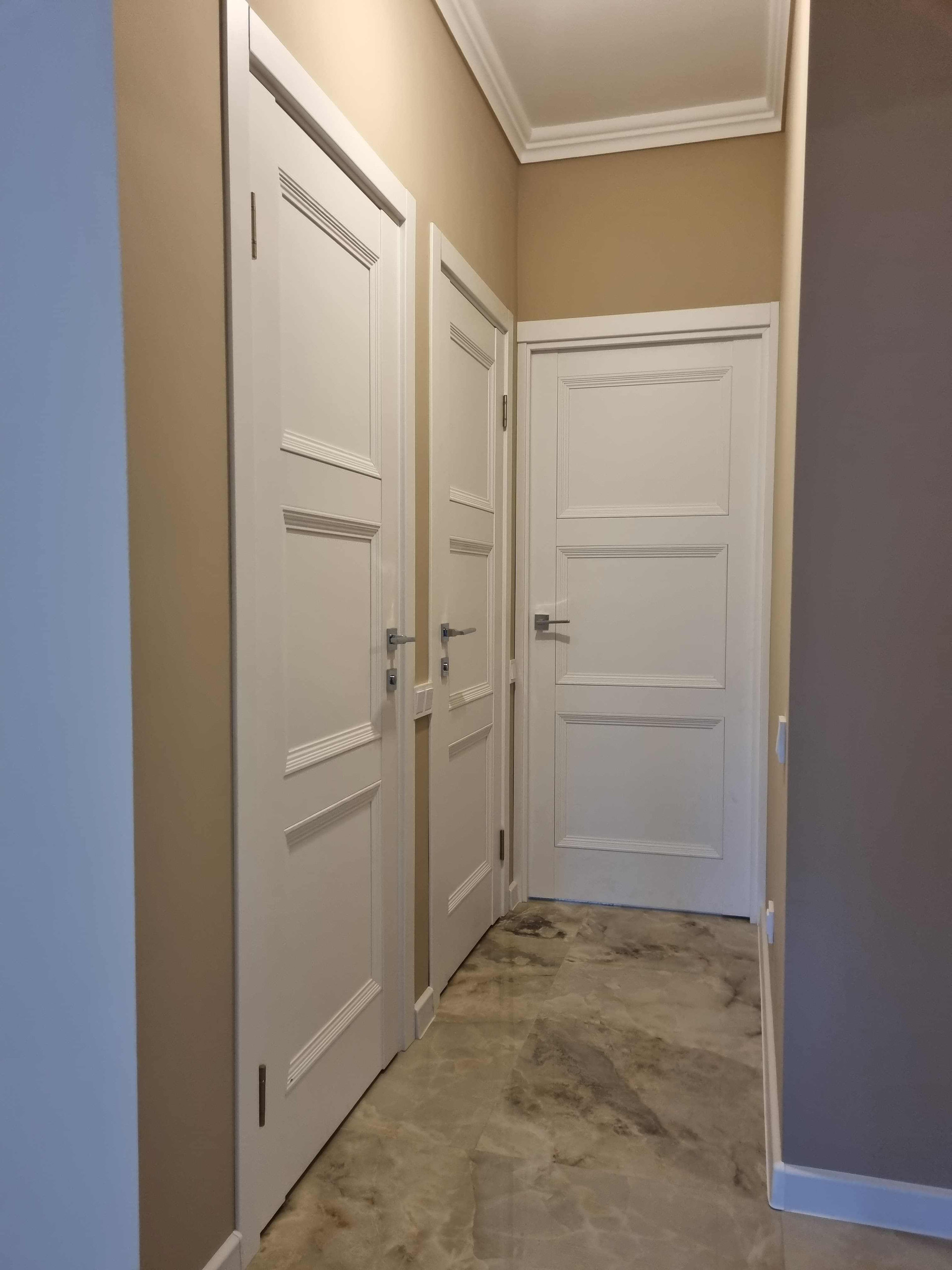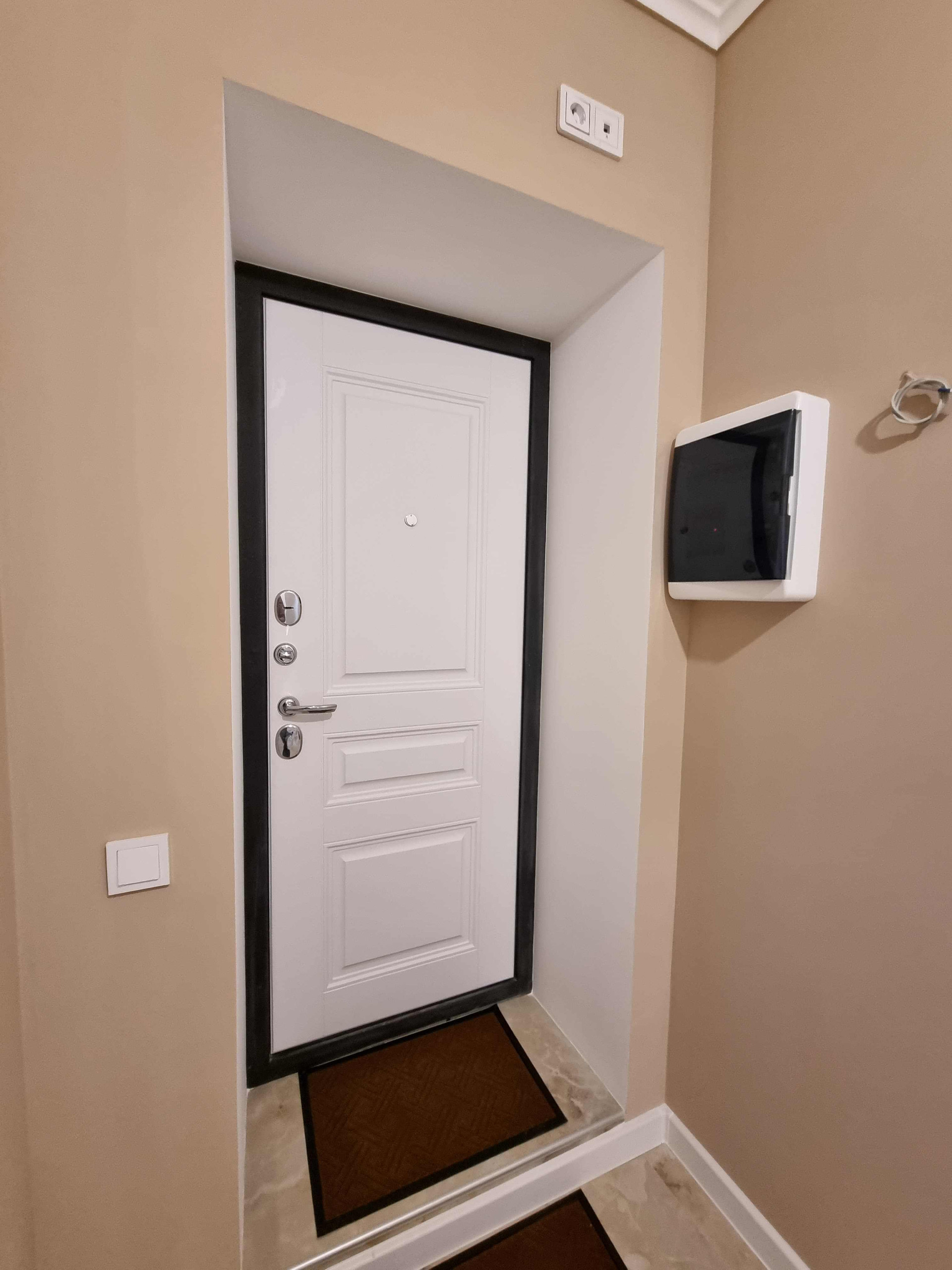 Новые плотные межкомнатные и надежная входная дверь. Пластиковые окна Rehau с эффектом тонировки.