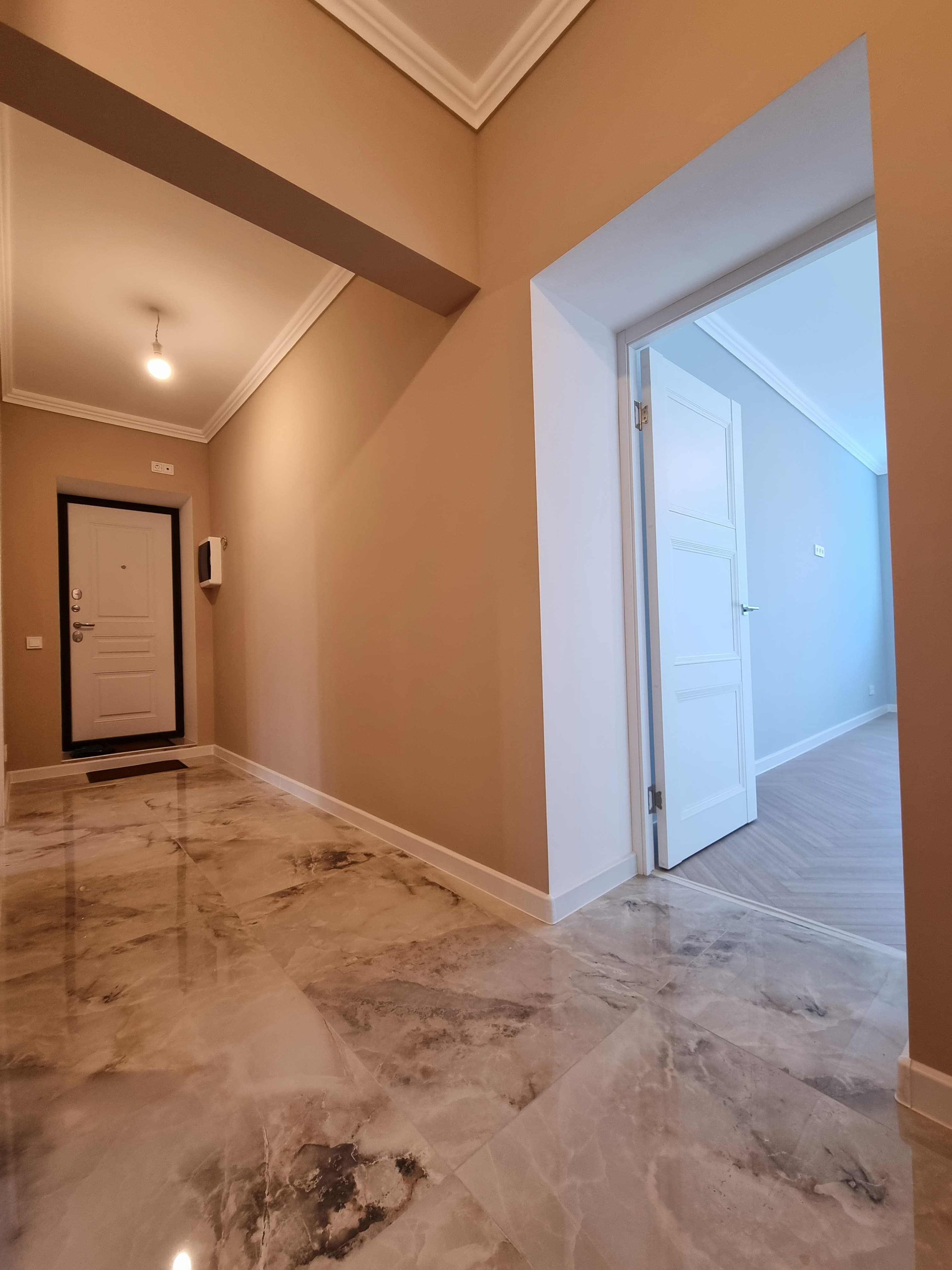 Продается полноценная двухкомнатная квартира 55.6м2 с дизайнерским ремонтом и личным парковочных местом под шлагбаумом!