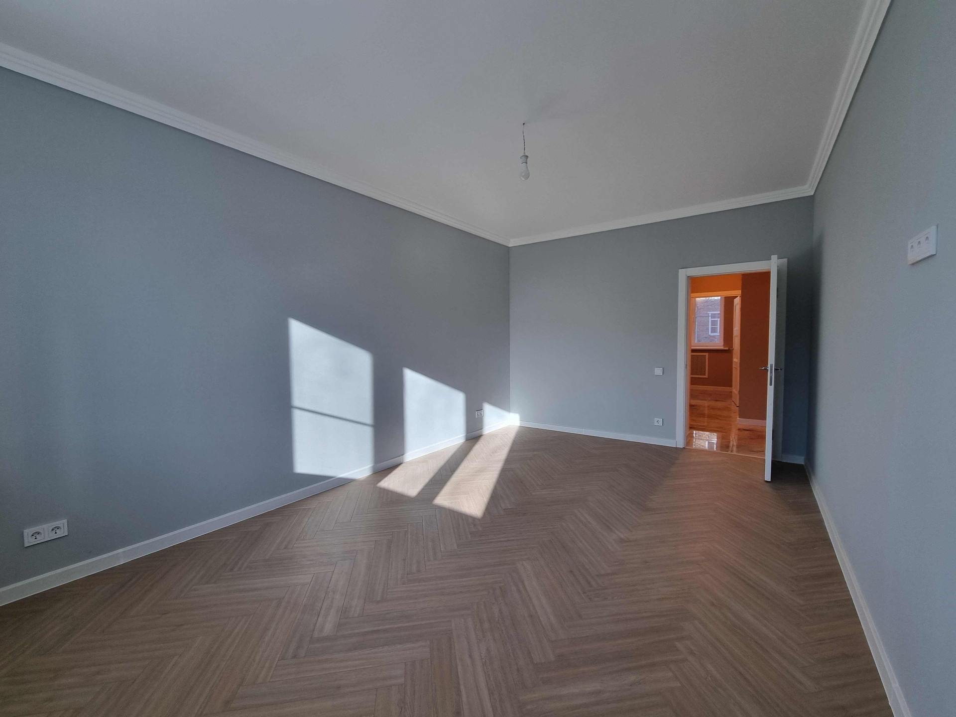 Новая проводка Гост и сантехника. Уложен красивый керамогранит с тёплым полом по всему периметру. В комнатах влагостойкий прочный 33 класса дизайнерский ламинат с фаской.