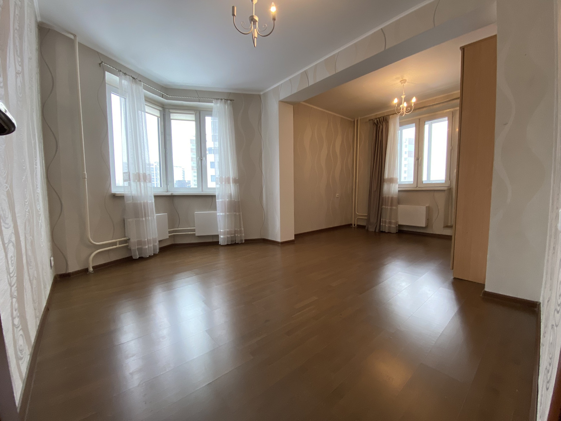 Продается просторная 2-х комнатная квартира общей площадью 64 кв.м с кухней-гостиной 12.8 кв.м с эркером, двумя изолированными комнатами 23.1 кв.м= 18.8 кв.м комната+4.3 кв.м лоджия и комнатой 18.2 кв.м=14 кв.м комната+4.2 кв.м балкон. Окна квартиры выходят на три стороны  света: восток, юг, запад. Солнце в вашей квартире будет целый день:)