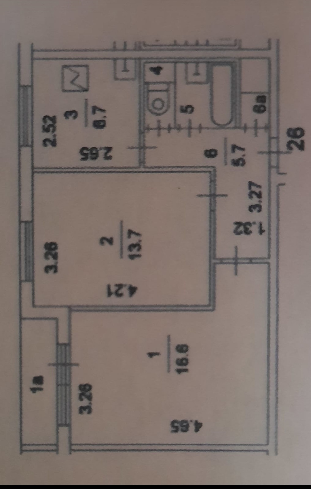 Жилая площадь 30.3 м2