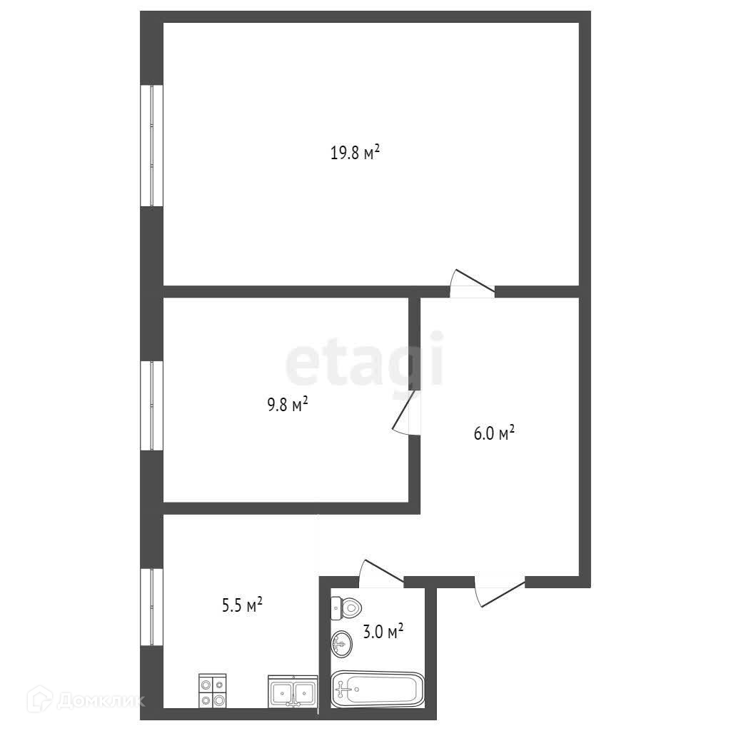 2-комнатная квартира, 42 м2, этаж 2 / 9, на продажу в Москве, улица Коновалова, 7