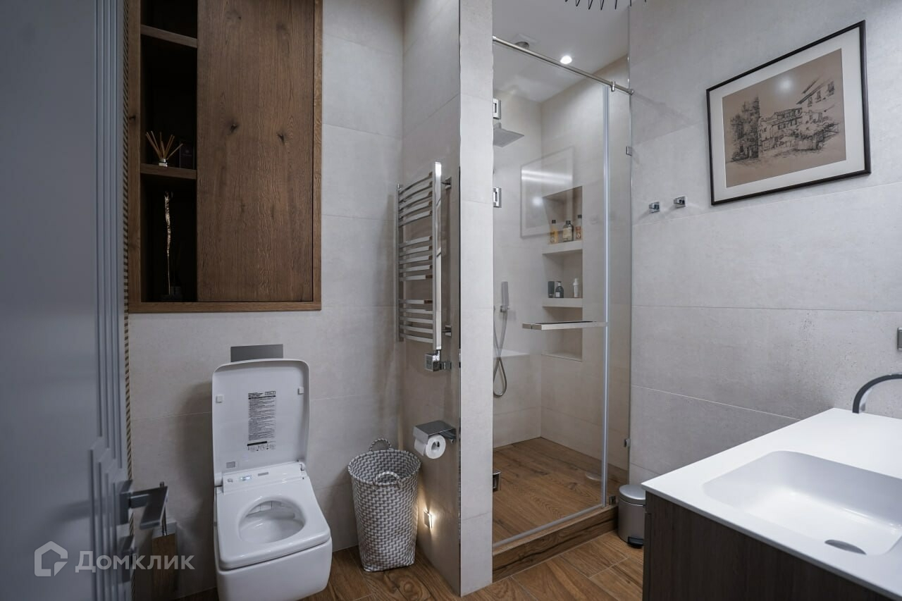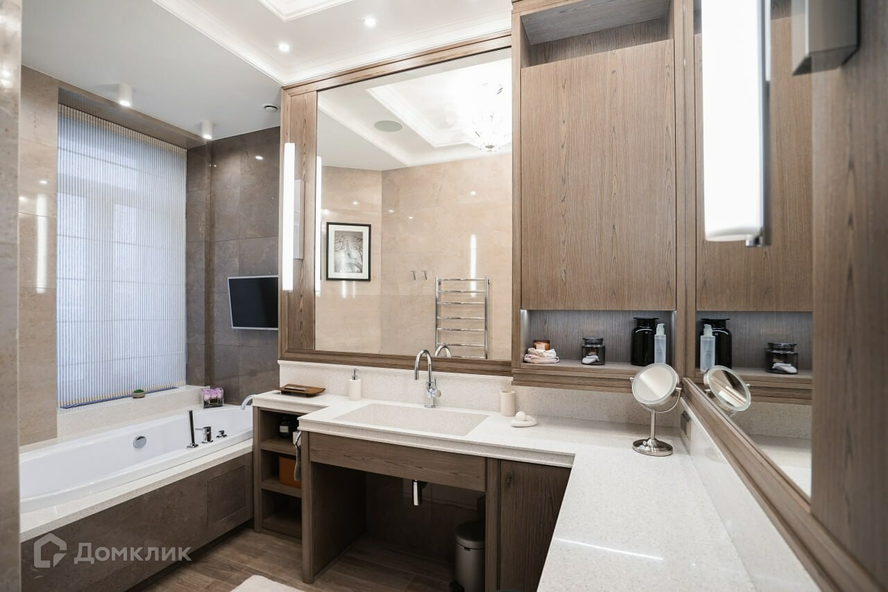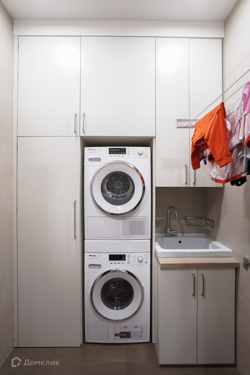 Квартира полностью меблирована и оборудована всей необходимой бытовой техникой и  полностью готова к проживанию. Для удобства проживая оборудованы многочисленные места хранения, гардеробные и постирочная.