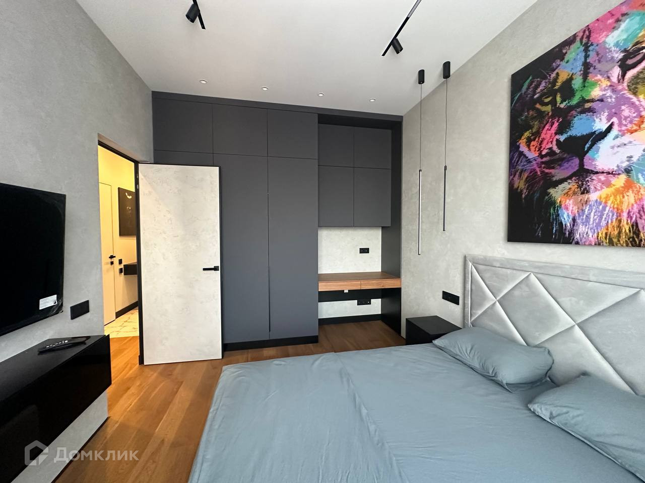Просторная спальня 13 кв.м. с рабочей зоной, вместительным шкафом, а также кроватью с подъемным механизмом. Просторная кухня 13 кв.м. с встроенной техникой и большим обеденным столом, гардеробная 2,5 кв.м. в прихожей 4,2 кв.м., санузел совмещенный 4 кв.м. В коридоре, санузле, там где плитка - теплый пол.