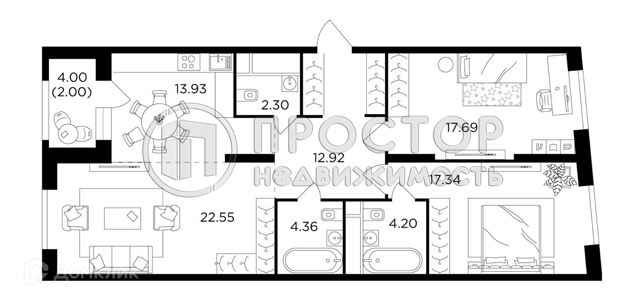 Общая площадь 95.5 м2