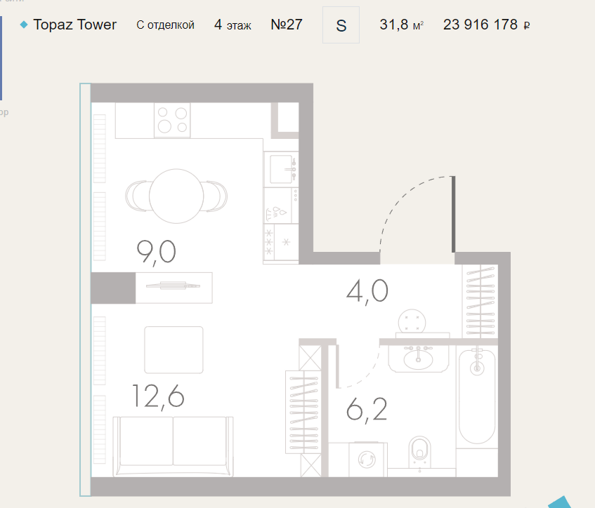 Общая площадь 32 м2