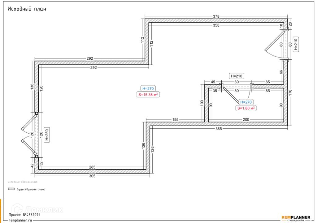 Общая площадь 15 м2
