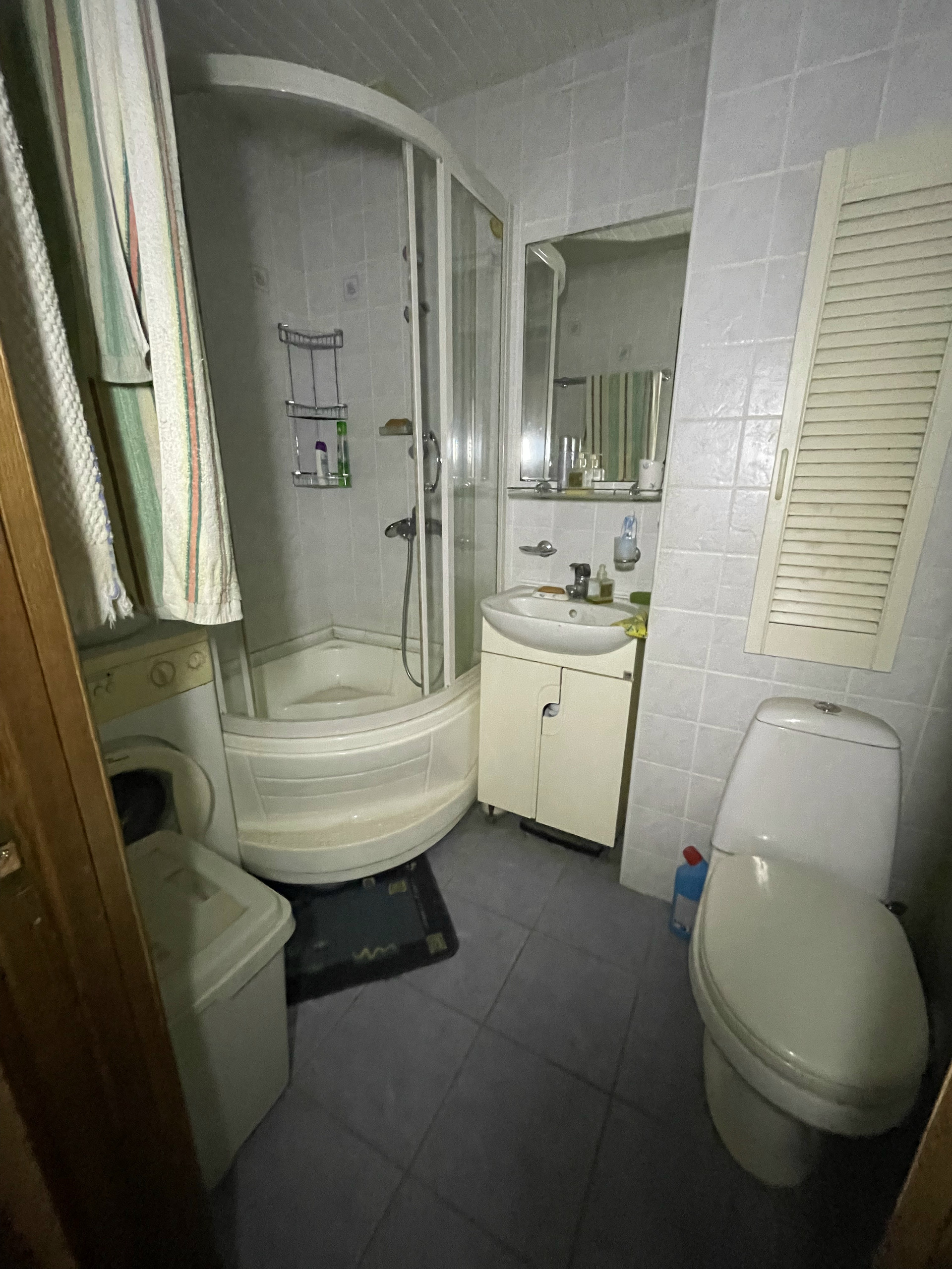 Санузел совмещенный, в санузле стиральная машина, душевая кабина.