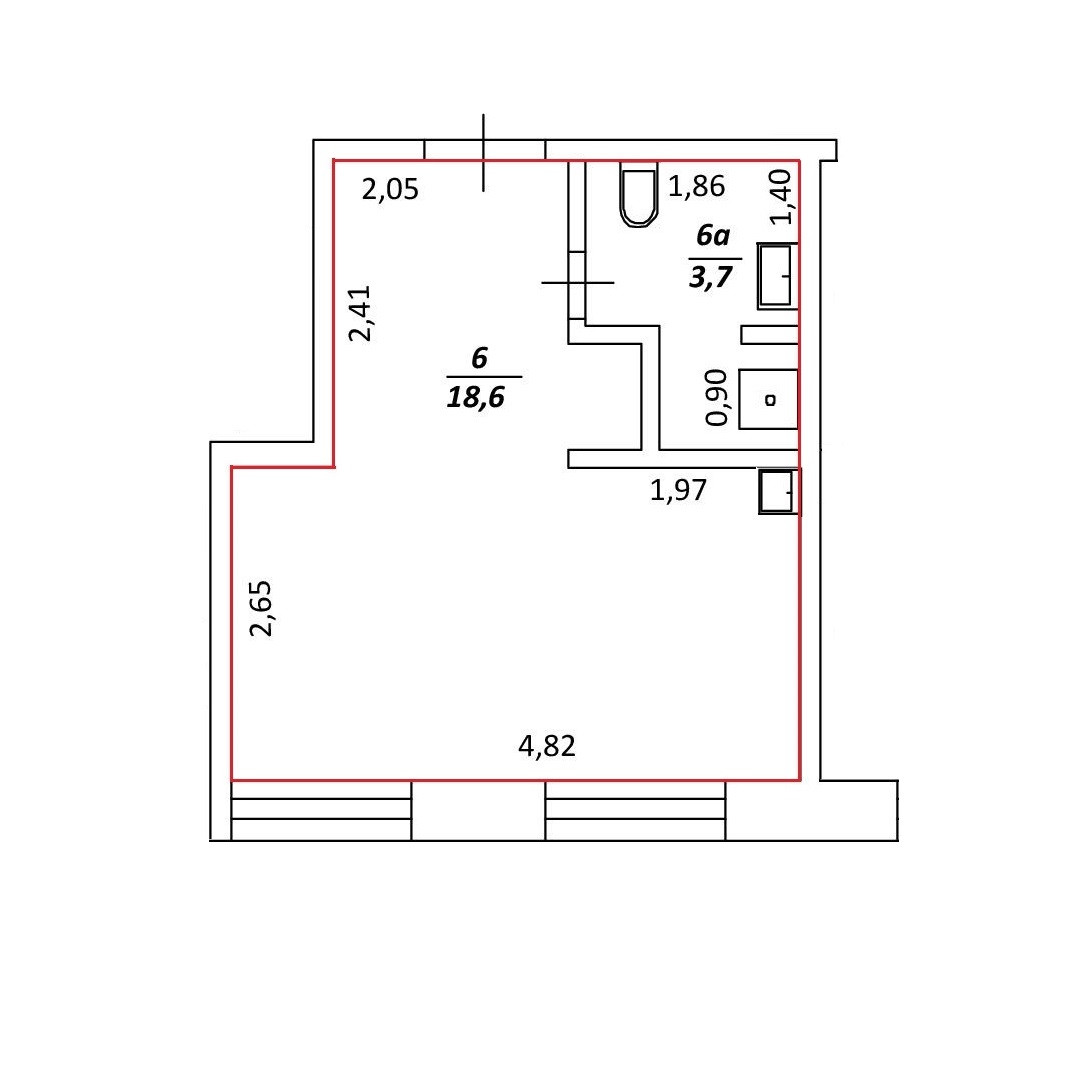 Общая площадь 32.9 м2