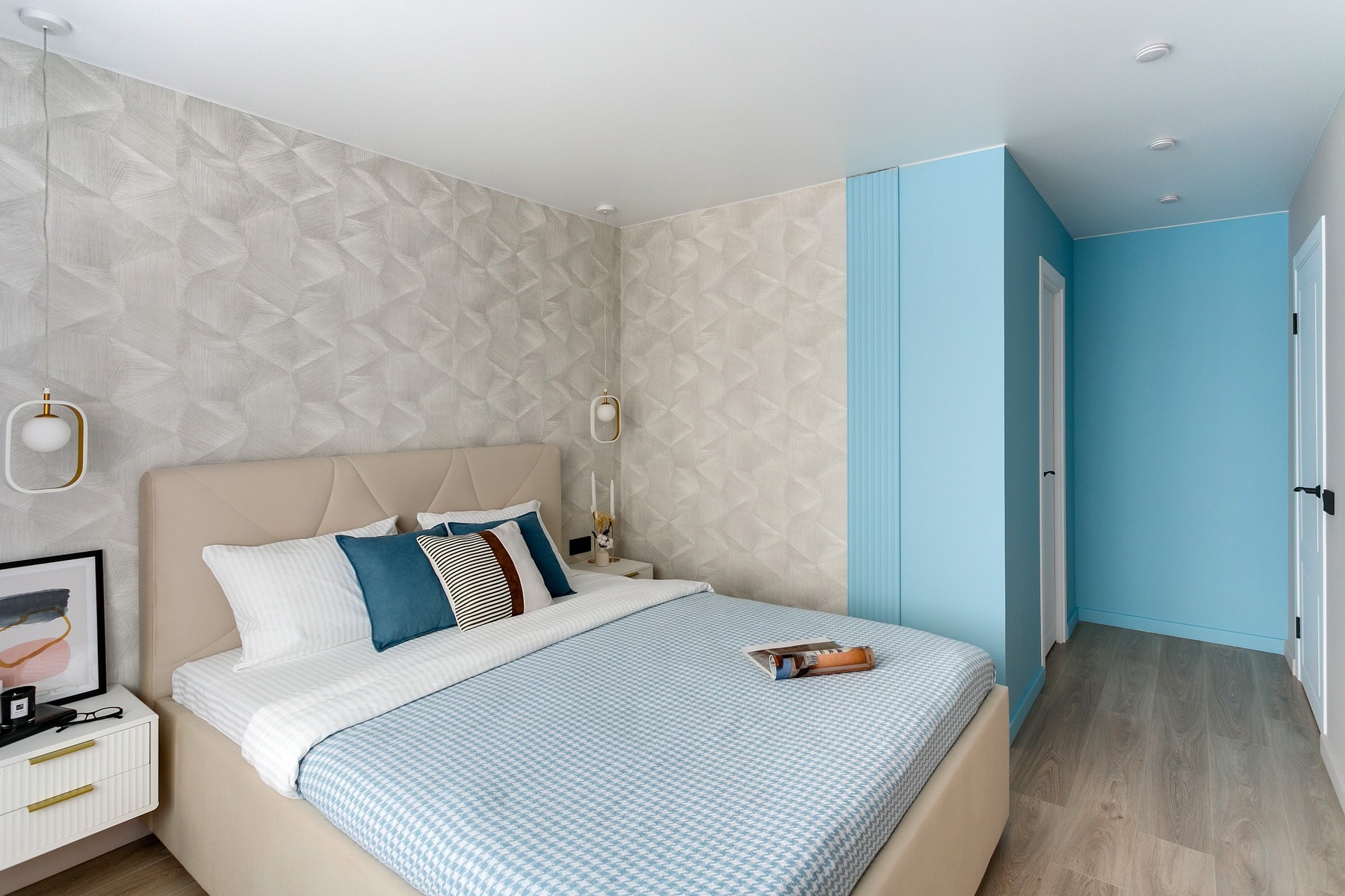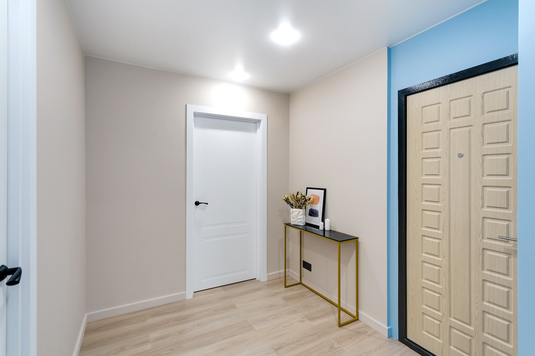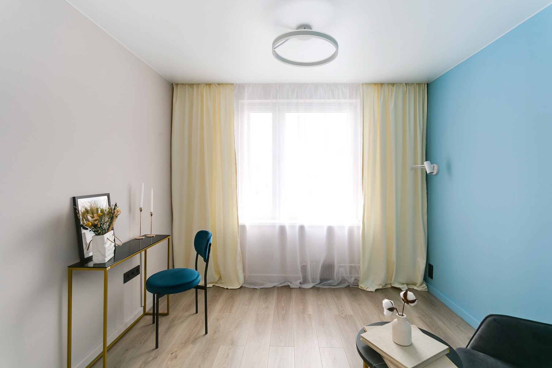 Заменены все коммуникации, электропроводка, входная дверь, радиаторы, полы и стены. Великолепный ремонт в светлых спокойных тонах с цветовыми акцентами.