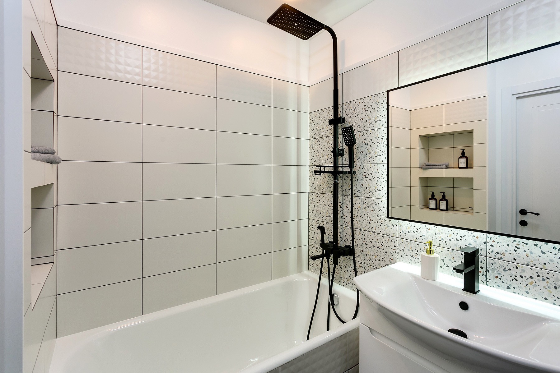Совмещенный, оборудованный всем необходимым санузел.