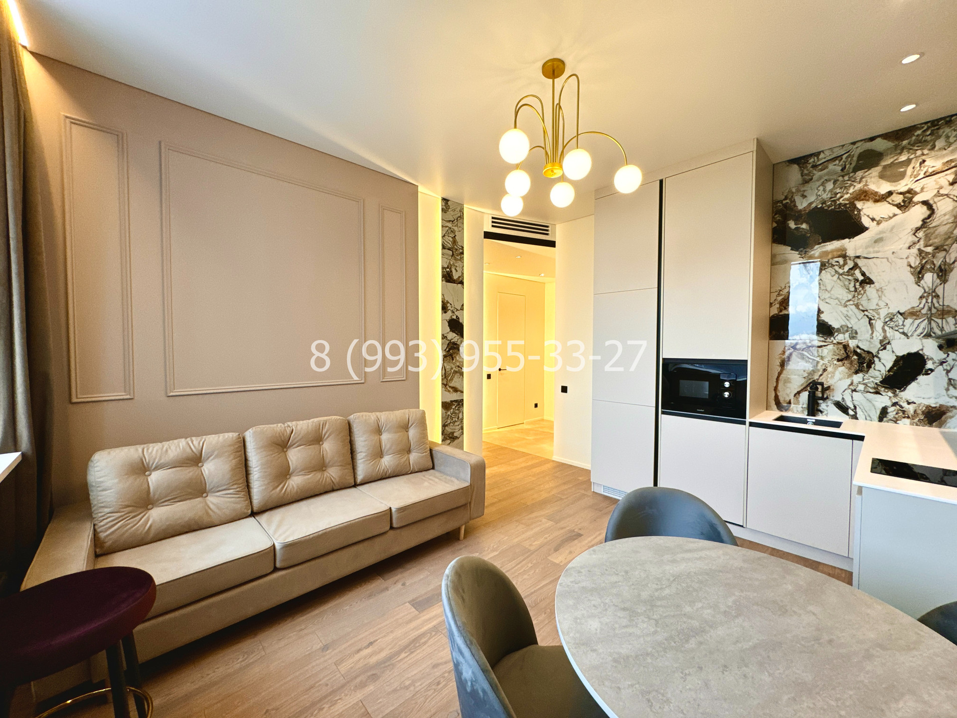 — Особенности квартиры: Полностью оборудована современными удобствами, включая паркетную доску на тёплом полу, приточную вытяжную систему с фильтрацией воздуха, 2 гардеробные, водонагреватель, посудомоечную машину, кондиционер, систему фильтрации воды, встраиваемую технику и беспроводные зарядные устройства по периметру квартиры.