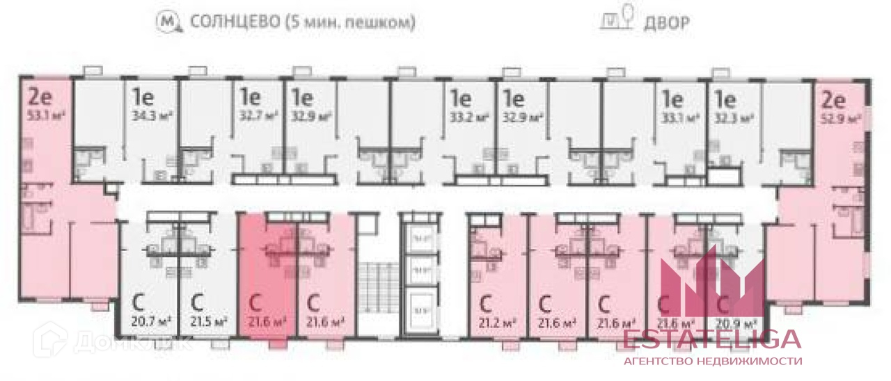 1-комнатная квартира, 21.6 м2, этаж 9 / 15, на продажу в Москве, жилой комплекс Лучи, к15
