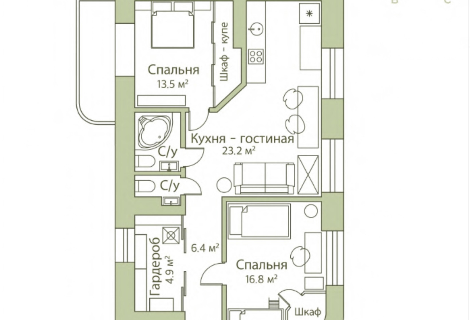 Общая площадь 70 м2