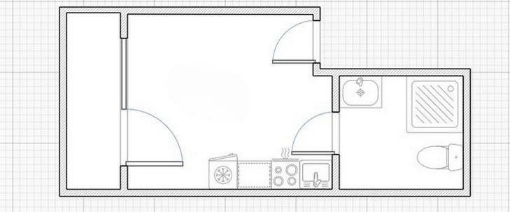 Студия под ремонт, в стоимость входит установка стен санузла, проведение коммуникаций, установка индивидуальных приборов учета на воду и свет, а также установка входной металлической двери и чистовой ремонт входной зоны.