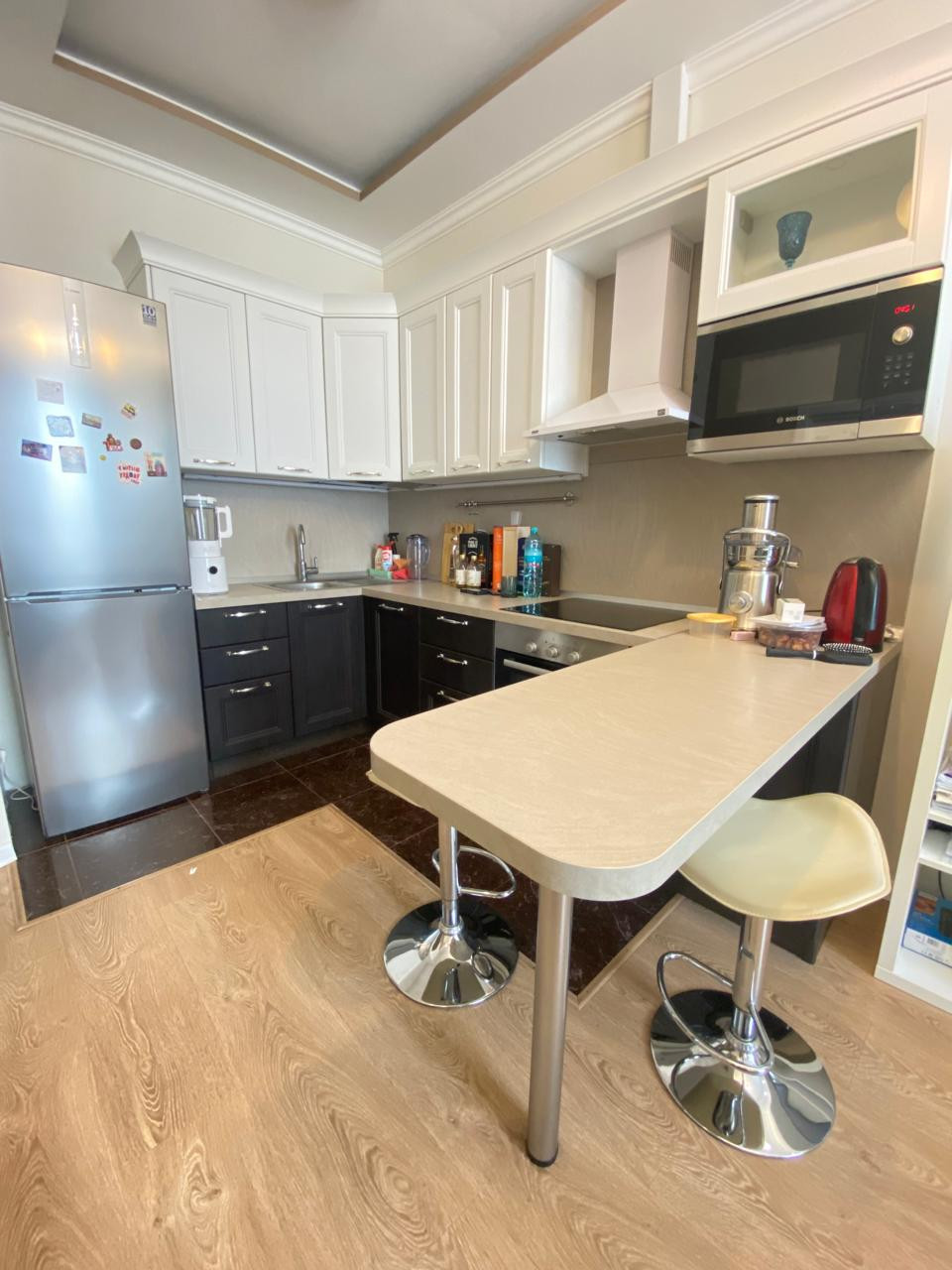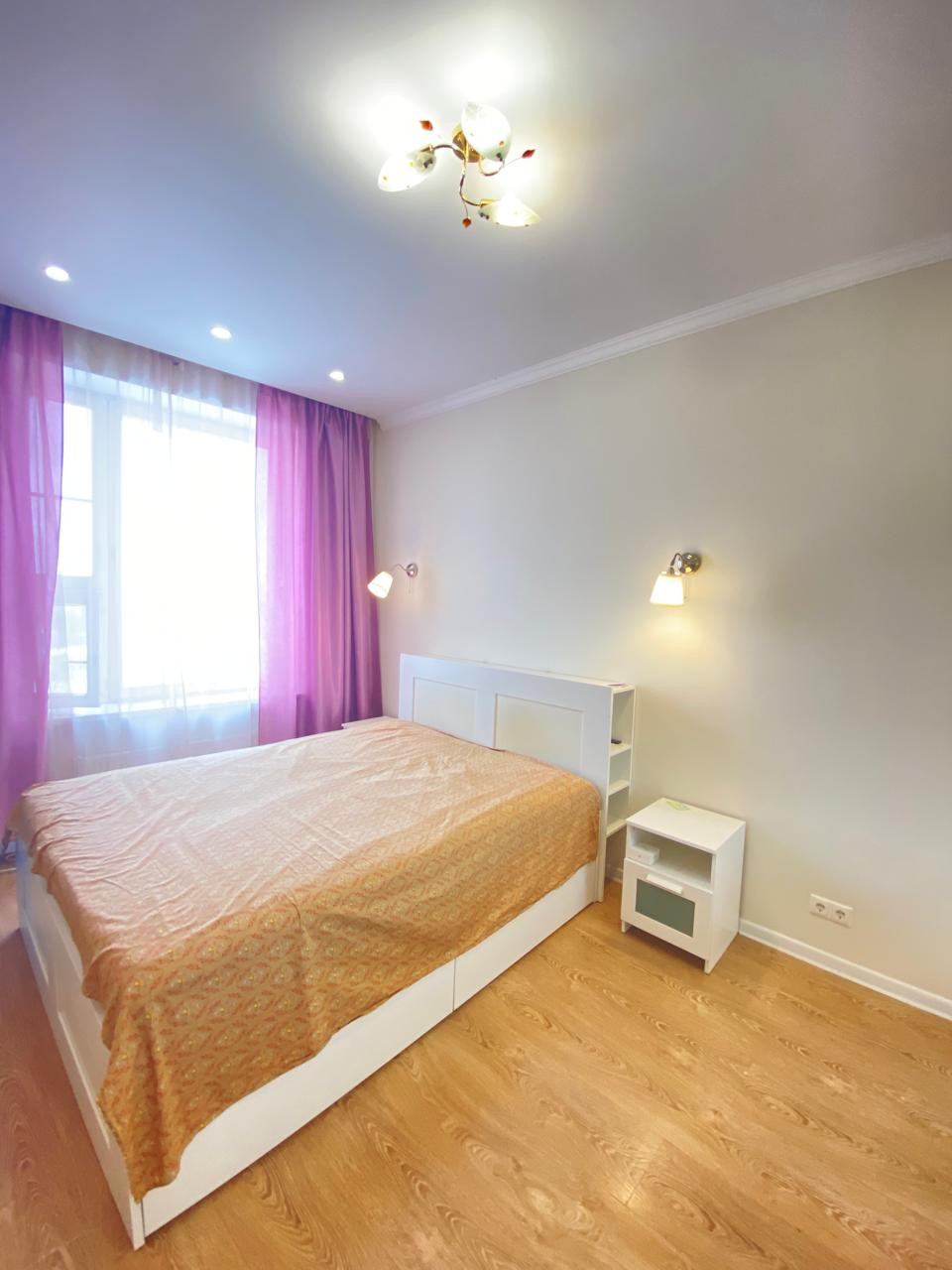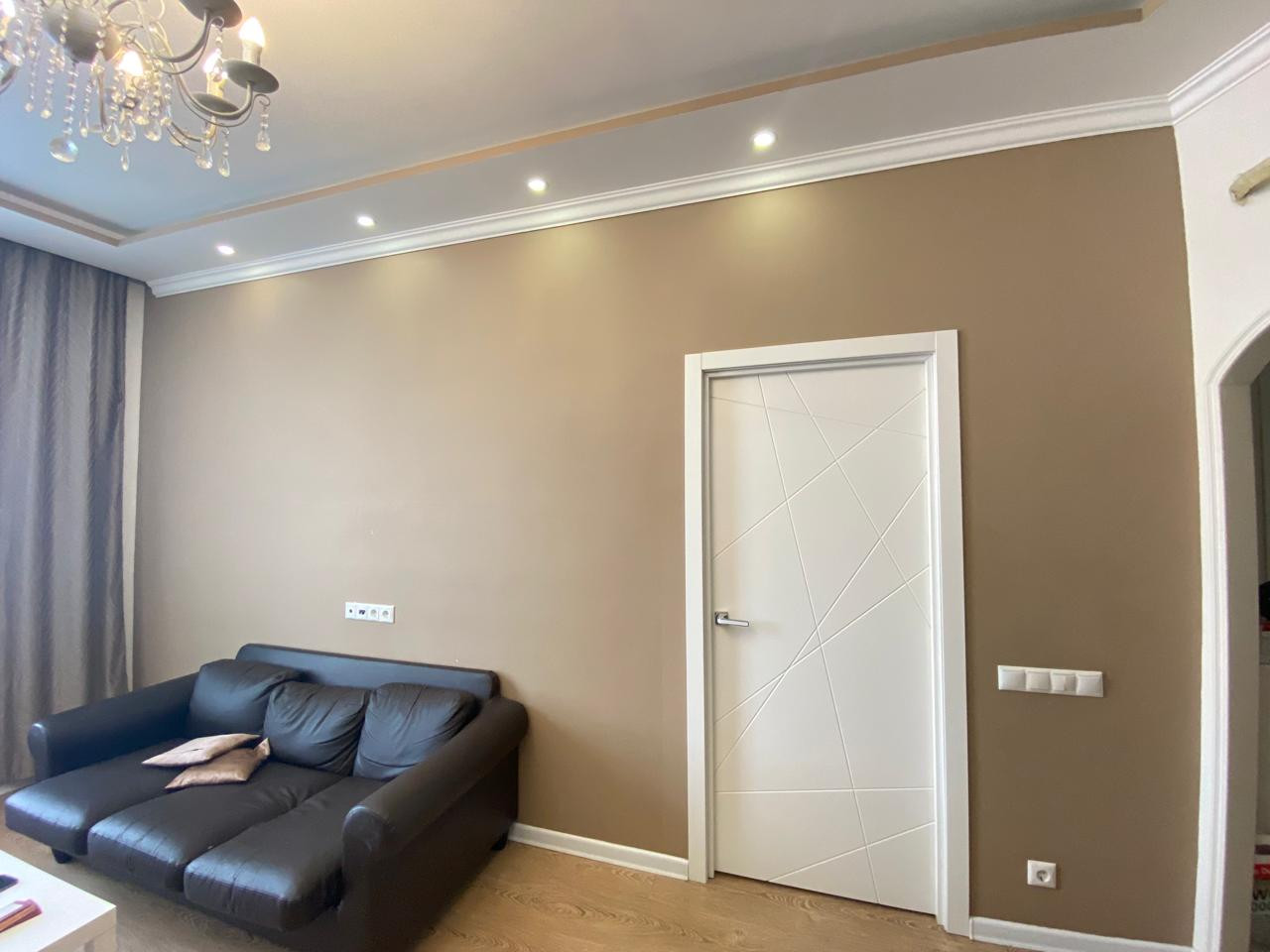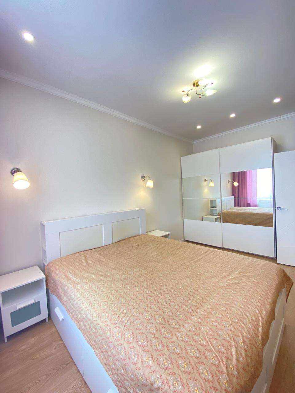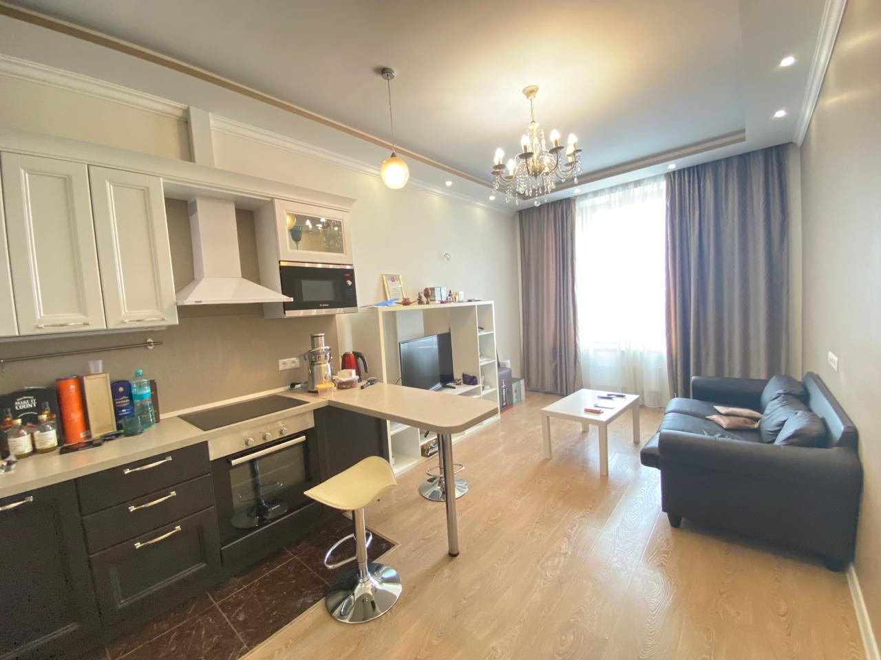 В квартире выполнен ремонт, функциональная планировка: спальная и большая кухня-гостиная, гардеробная комната, совмещенный санузел.