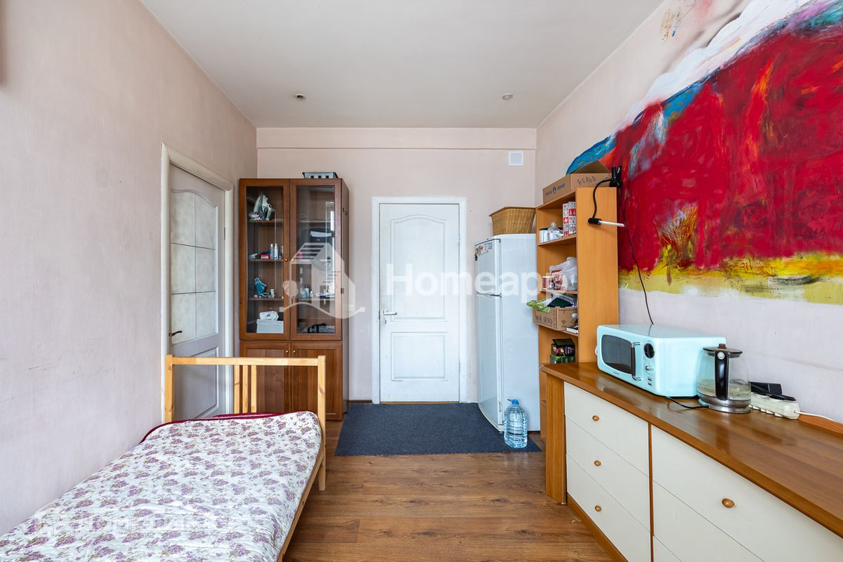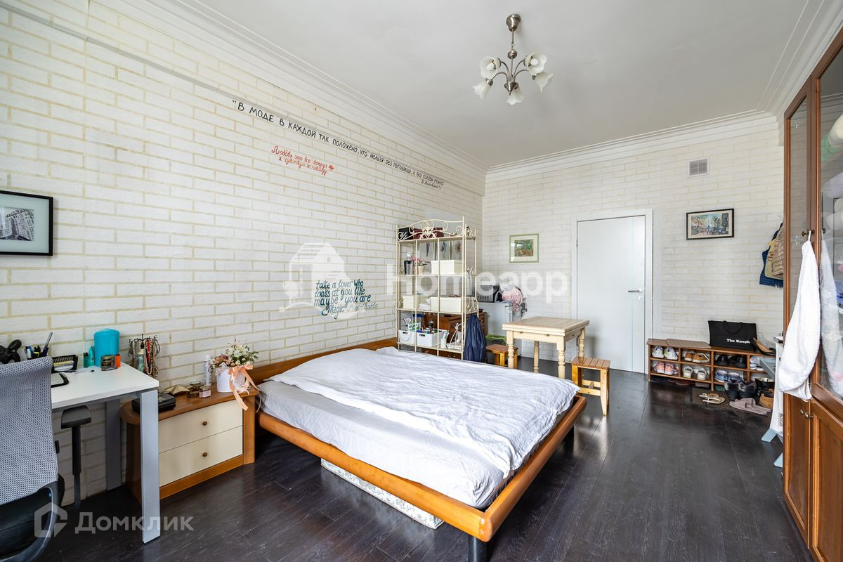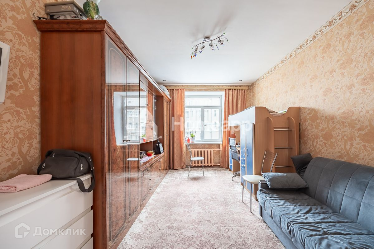 Согласно планировке в квартире 4 изолированные комнаты: 19 м², 21 м², 23 м² и 14 м², кухня 9 м², 2 санузла, кладовая. Комната 23 м² поделена на 2 помещения, поскольку имеет 2 окна, поэтому в данный момент квартира состоит из 5 спален. В одной из комнат французский балкон. Установлены пластиковые окна. Ремонт - косметический. Квартира меблирована как на фото. Мебель остаётся или вывозится по согласованию с покупателем.