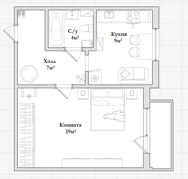 Жилая площадь 19 м2