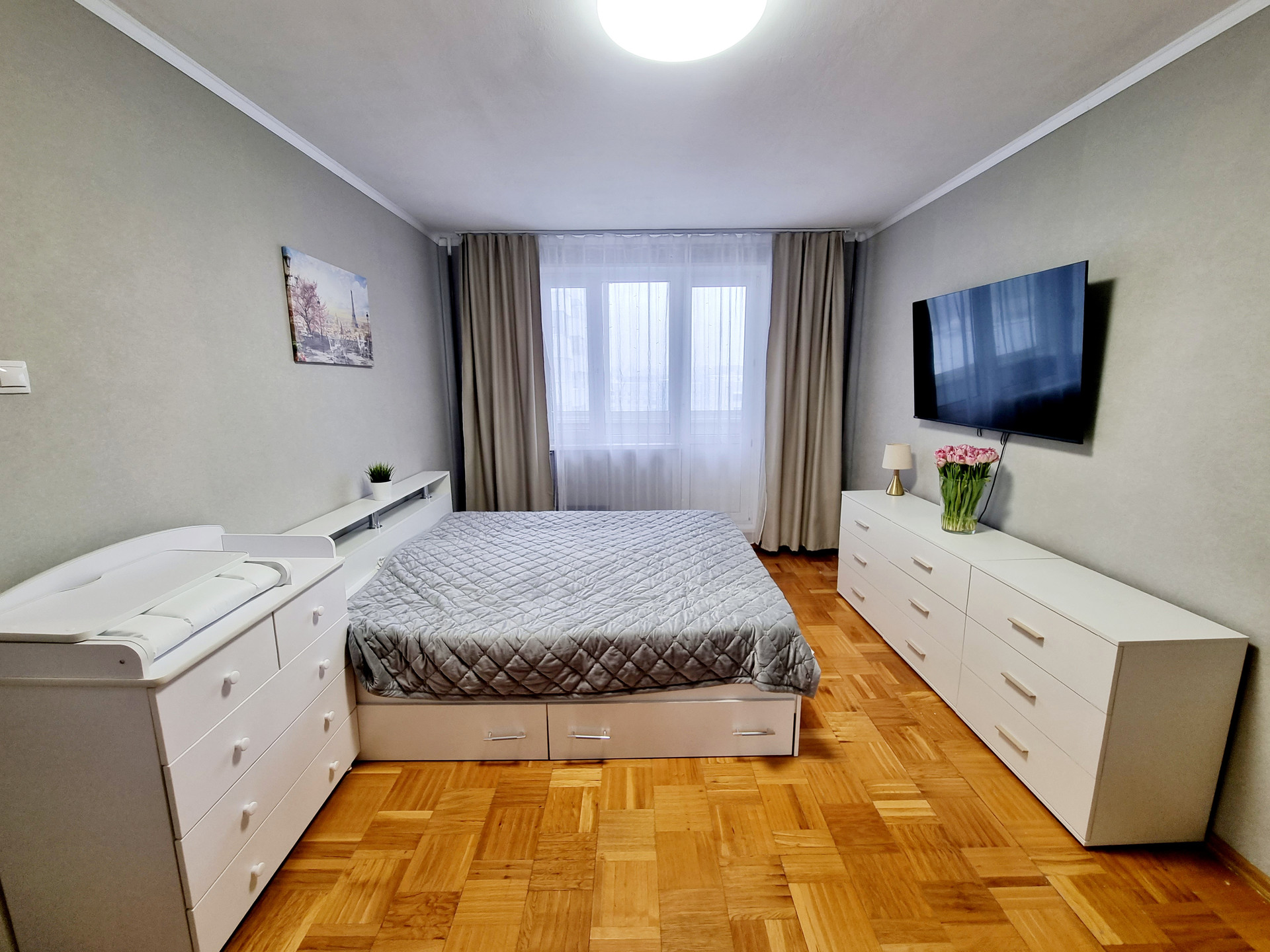 Просторная однокомнатная квартира, на высоком этаже с видом на канал Москвы-реки. Жилая комната 20м2 (остается зеркальный шкаф-купе), кухня 8 м2 (кухонный гарнитур с техникой также входит в стоимость), компактный совмещенный санузел (с бойлером для нагрева воды в моменты отключений горячего водоснабжения и стиральной машиной). Квартира жилая, выполнен косметический ремонт.