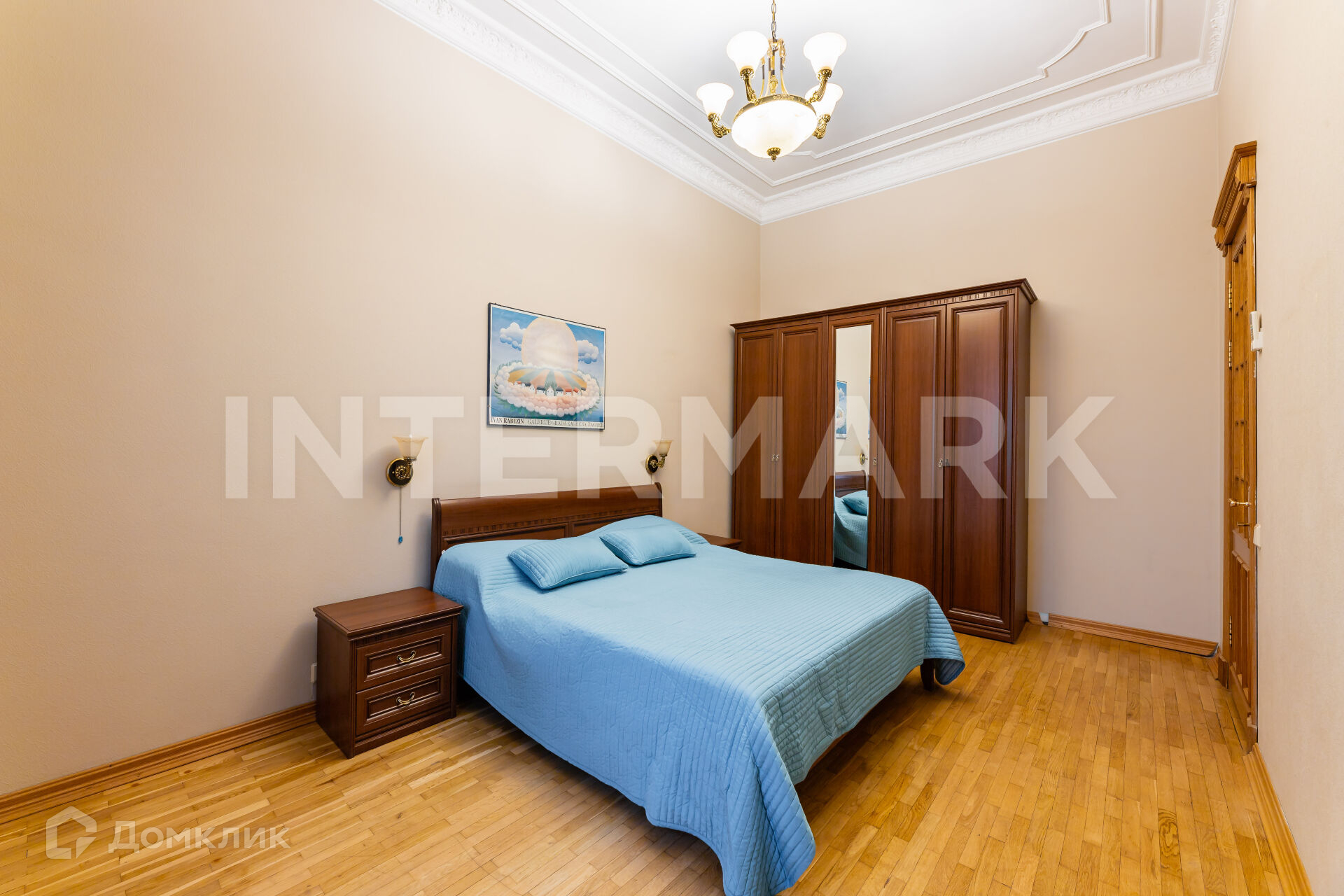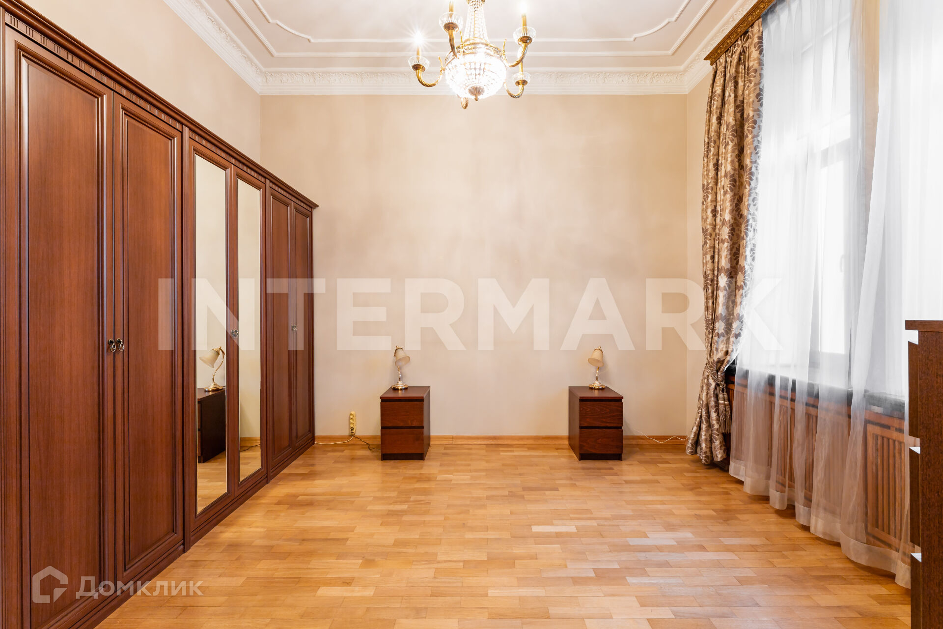 Спланированы величественная гостиная с действующим камином, три просторные спальни, две ванные комнаты, отделанные мрамором, оборудованная кухня. В квартире деревянные стеклопакеты, мраморные подоконники, высокие потолки с лепниной, сохраненной со времен постройки дома, художественный паркет-мозаика, бойлер, подогрев полов, телефон, интернет, спутниковое ТВ.