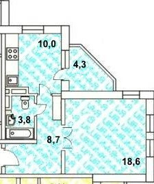 Общая площадь 41.3 м2