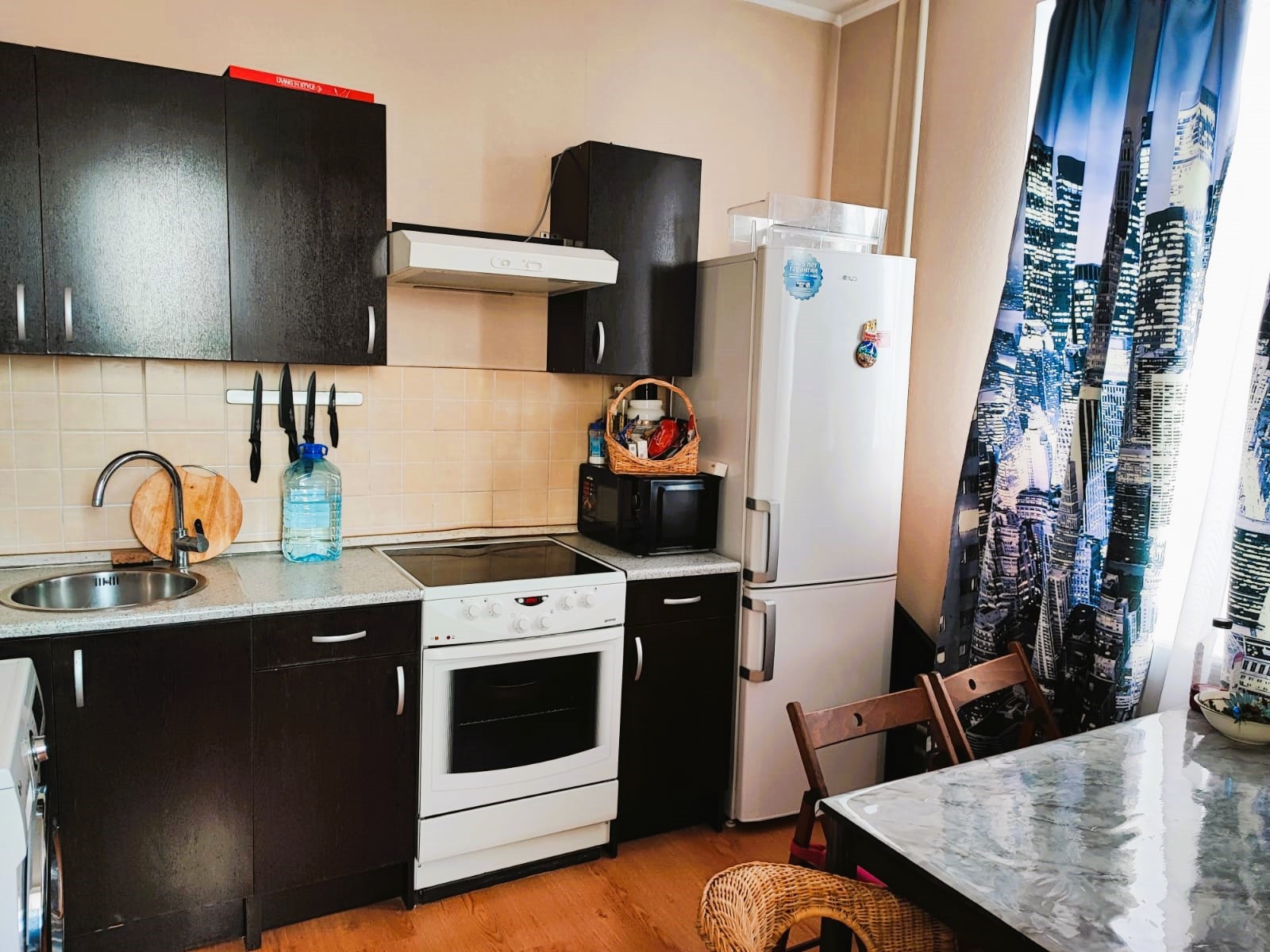 Продается просторная однокомнатная квартира интересной планировки в новом доме. Район замечательный - рядом отличная прогулочная зона, много магазинов и других полезностей, дом 2008 года, очень зеленый (сейчас белый) двор, классный подъезд с бдительным консьержем, новые лифты. В квартире окна на 2 стороны - запад и юг, что редкость для однушки, много света, в комнате 3 окна, на кухне 2 окна, плюс огромная полукруглая лоджия между ними.  Санузел тоже очень большой, можно сделать раздельный при необходимости. Квартира в хорошем жилом состоянии, есть кондиционер, встроенная кухня, а еще есть отличные арендаторы, готовые остаться, причем со своей мебелью! Квартира в одной семье с момента постройки дома, первая продажа, свободная, все документы в порядке. Приезжайте смотреть, вам понравится!