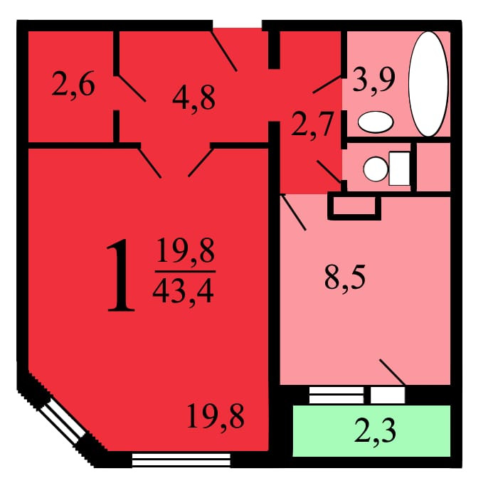 Санузел 1 раздельный