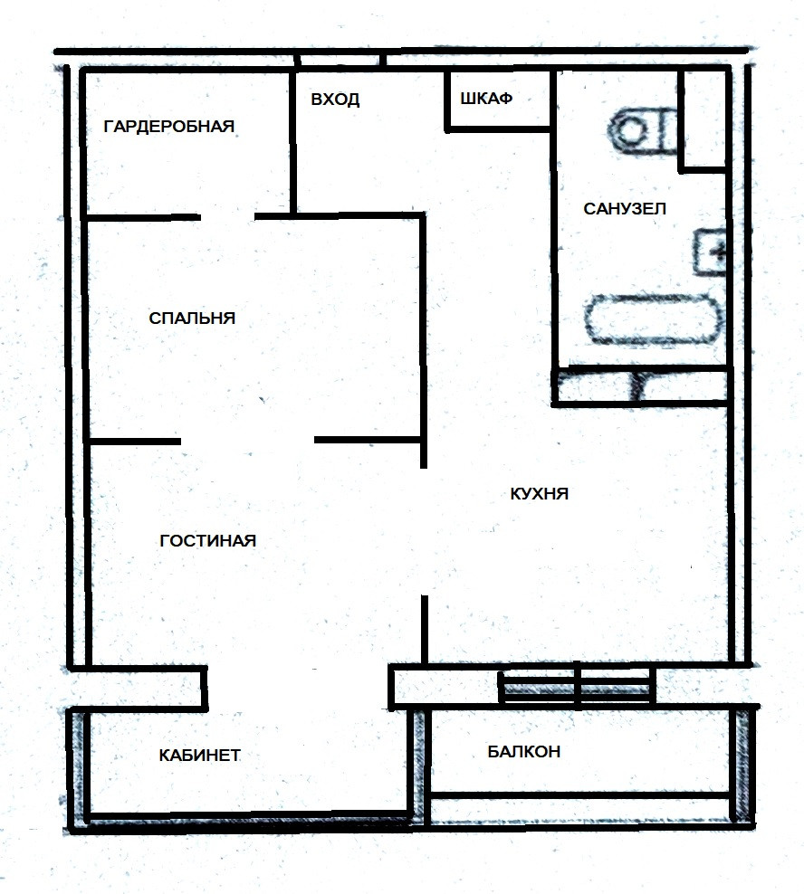 ПРОДУМАННАЯ ПЛАНИРОВКА: кухня 14 кв.м. с выходом на балкон, спальня с укомплектованной ГАРДЕРОБНОЙ, гостиная и кабинет, совмещенный санузел, просторный коридор со встроенным шкафом.