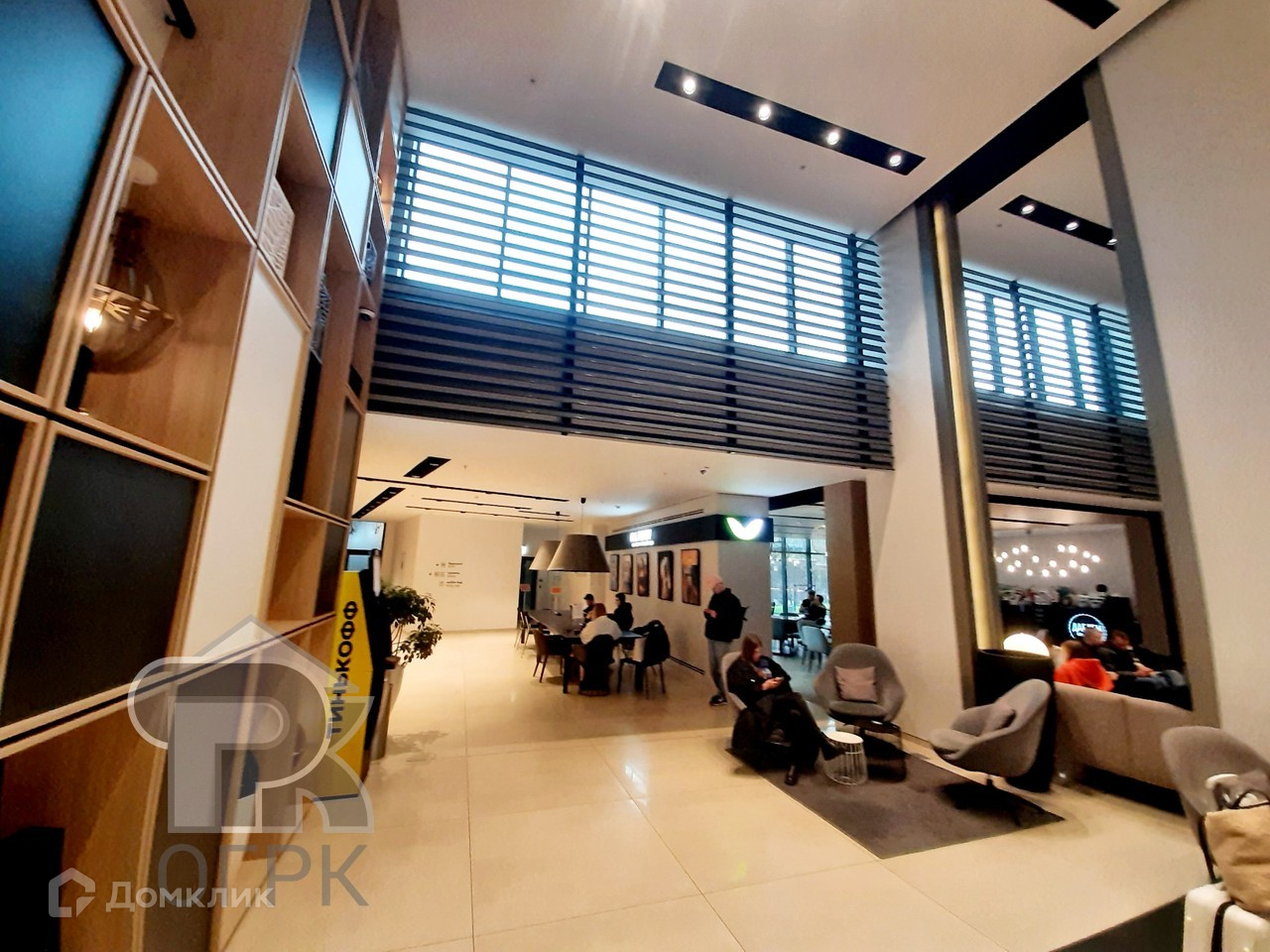 В холле есть лаунж-зоны с мебелью и телеэкранами, коворкинг, ресторан, кафе.
